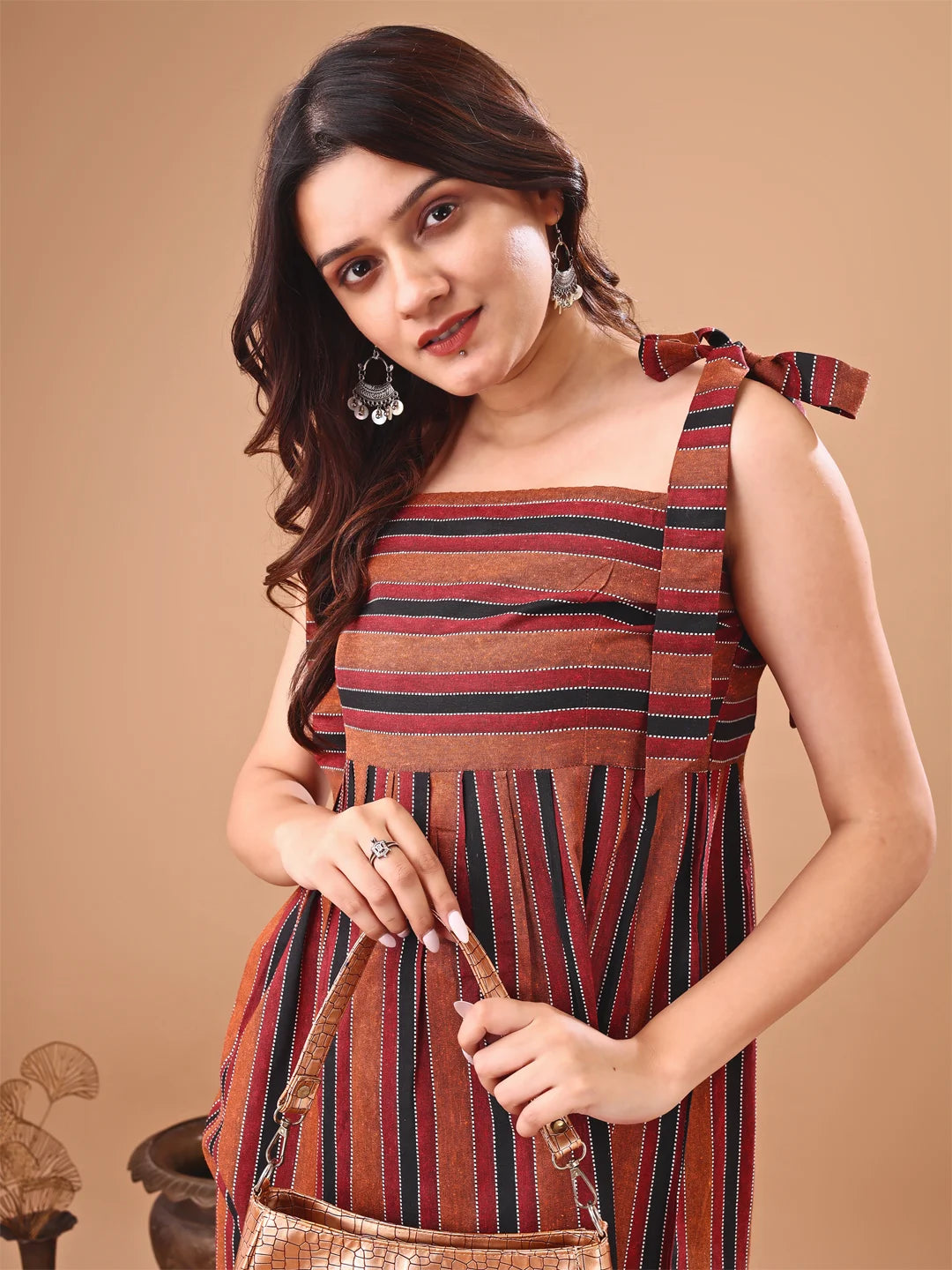 This Brown Colour A-line Striped Print Short Top Made of Cotton Blend material With Beautiful...