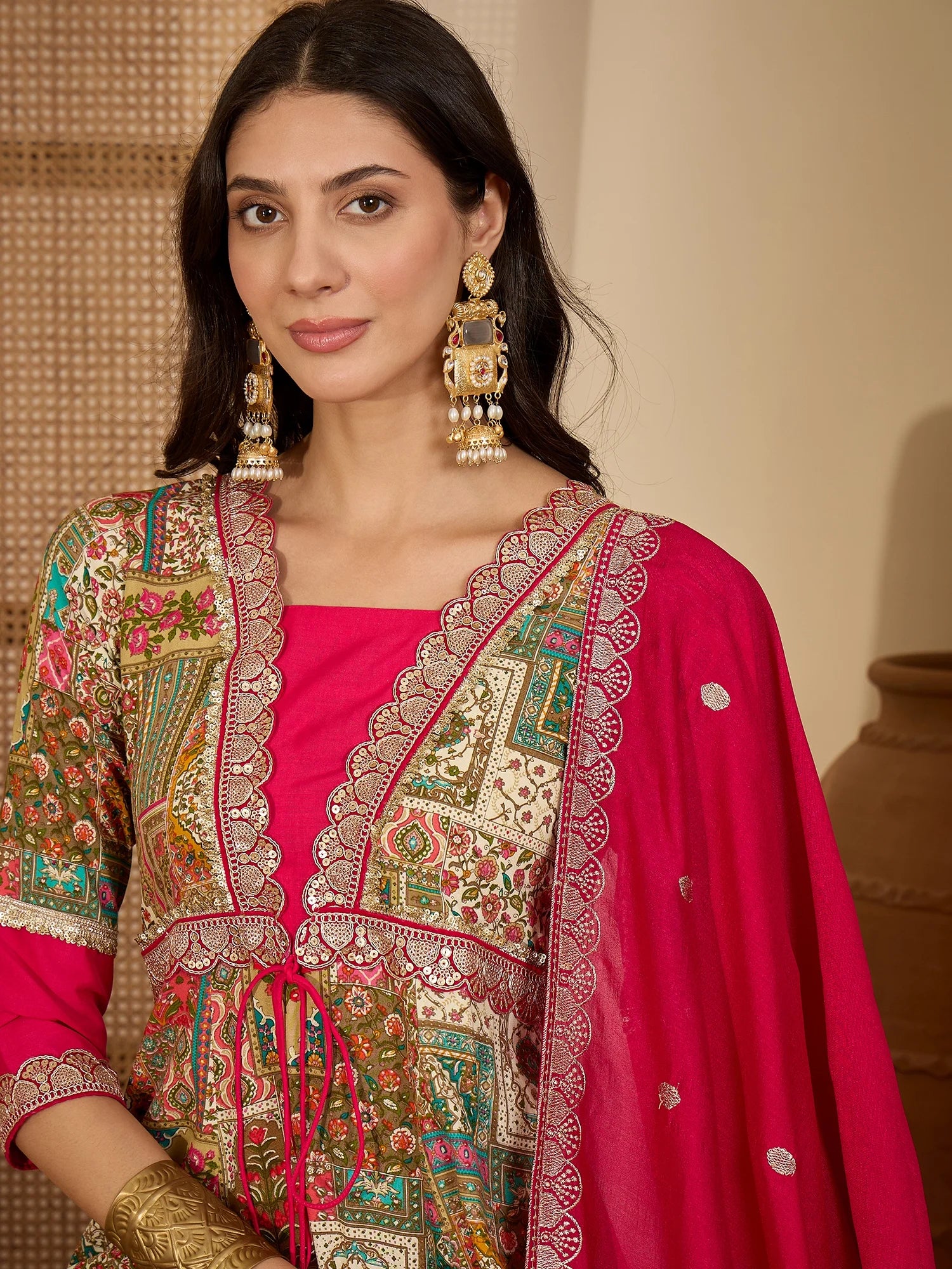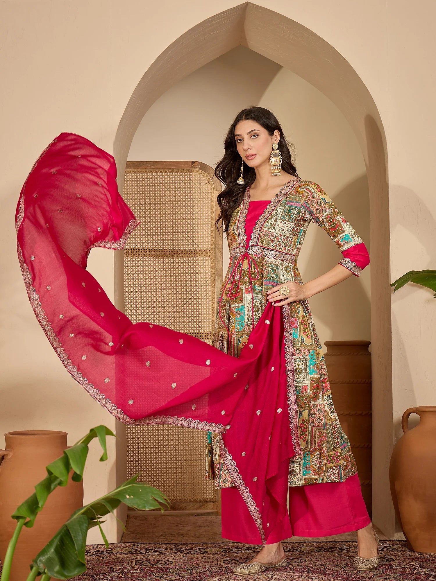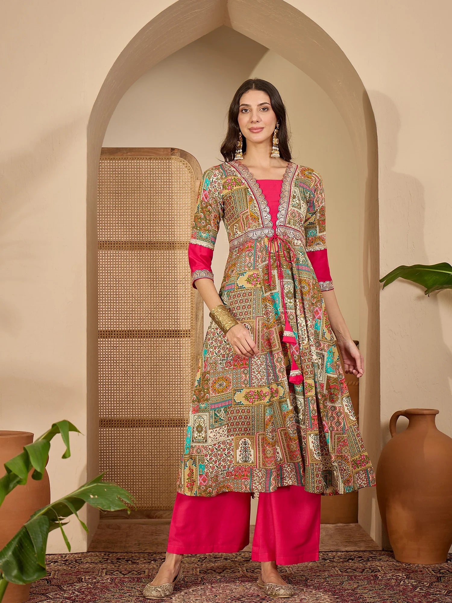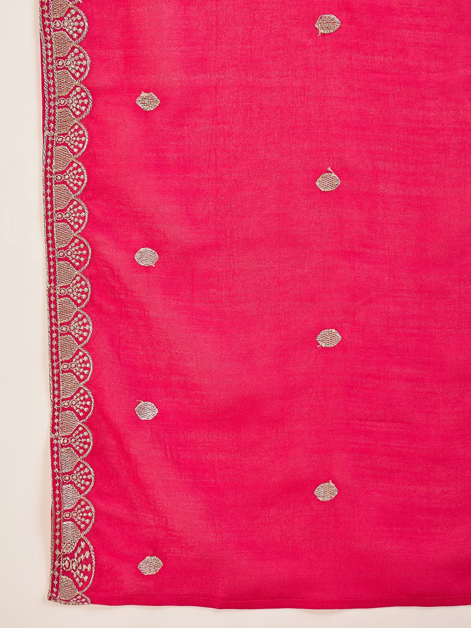 Beige Viscose Rayon Embroidered Anarkali Kurta Palazzo with Dupatta Set