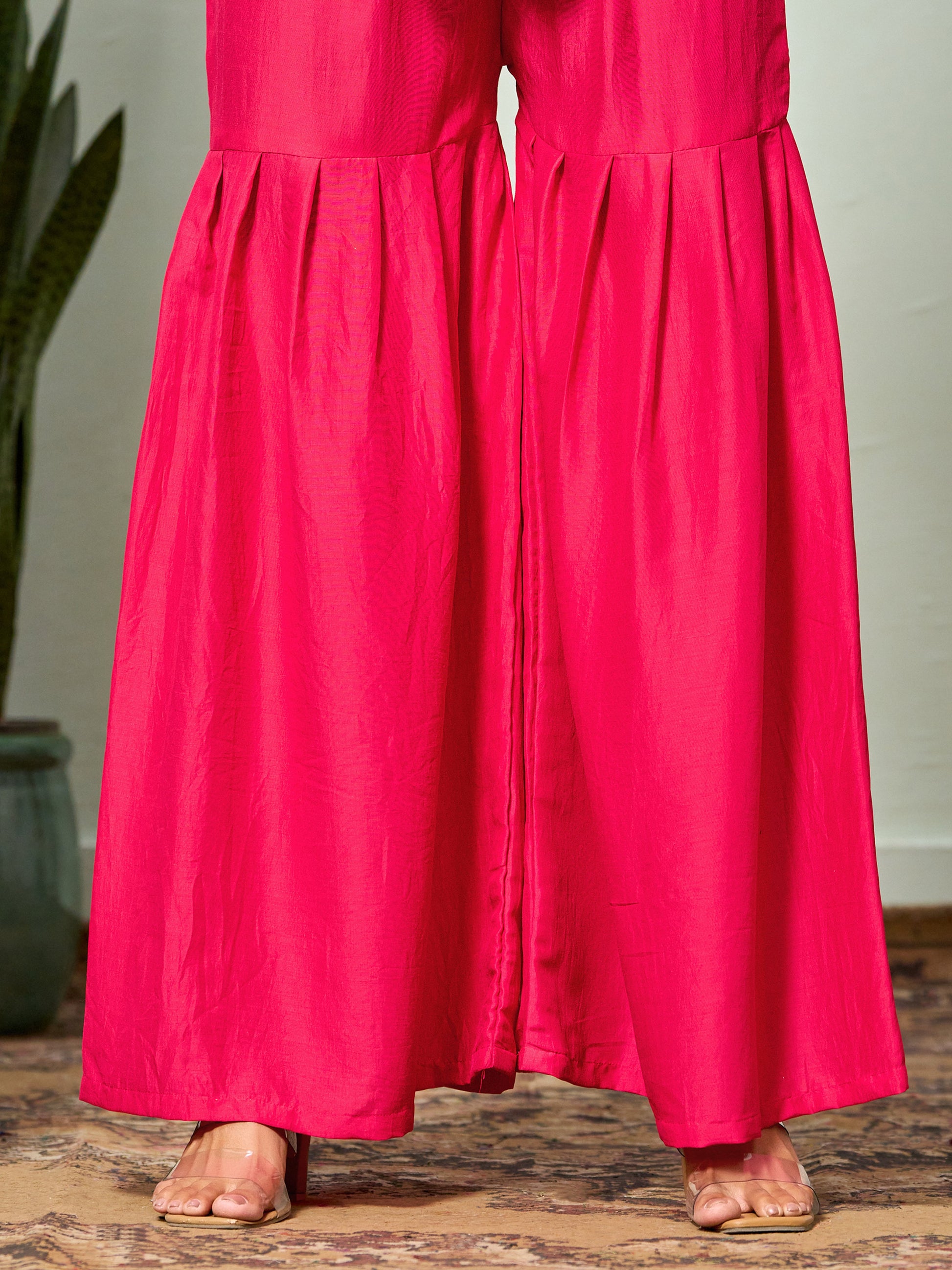 Pink Chinon A-line Floral Kurta Sharara Set With Embroidered Belt