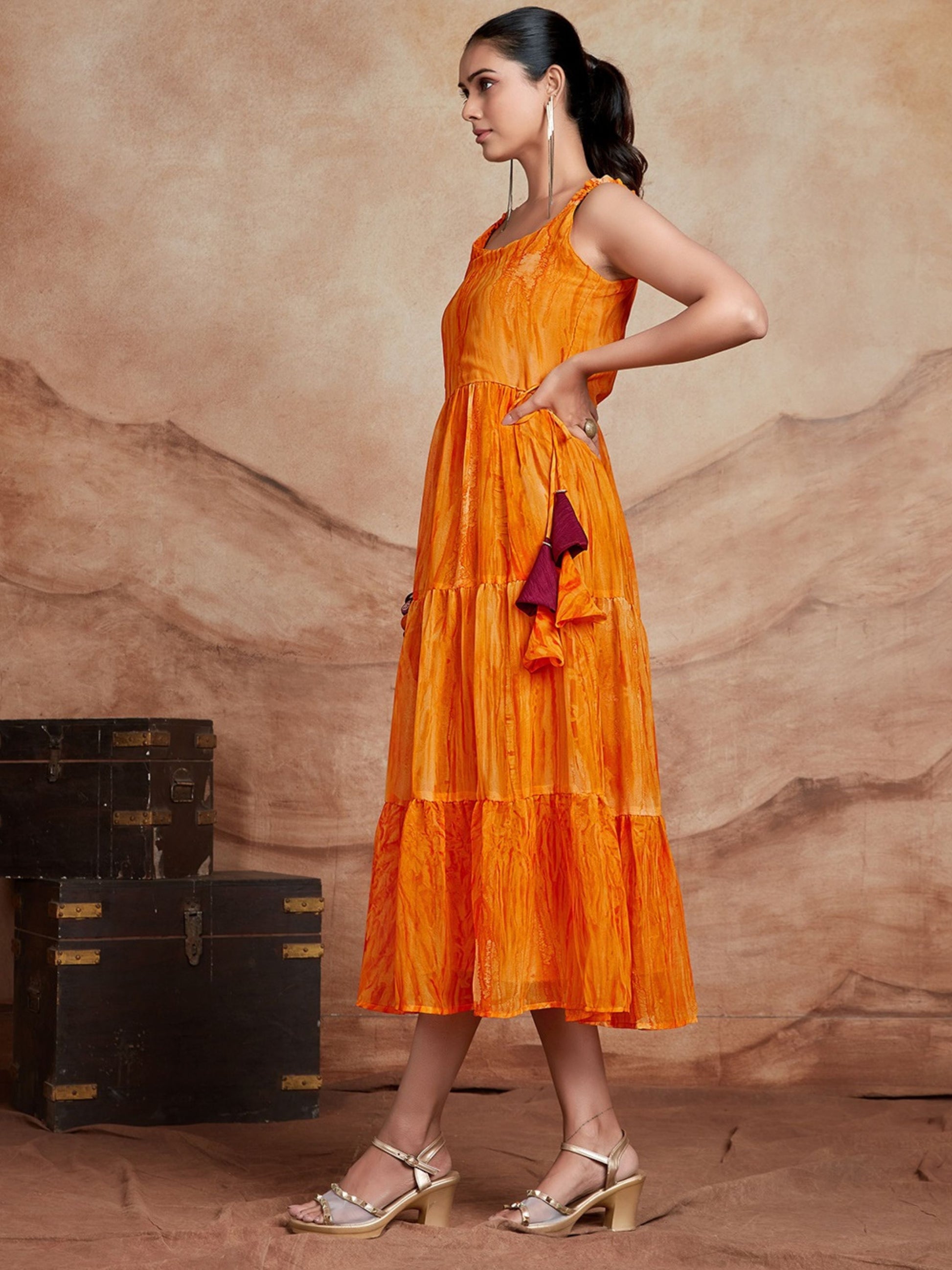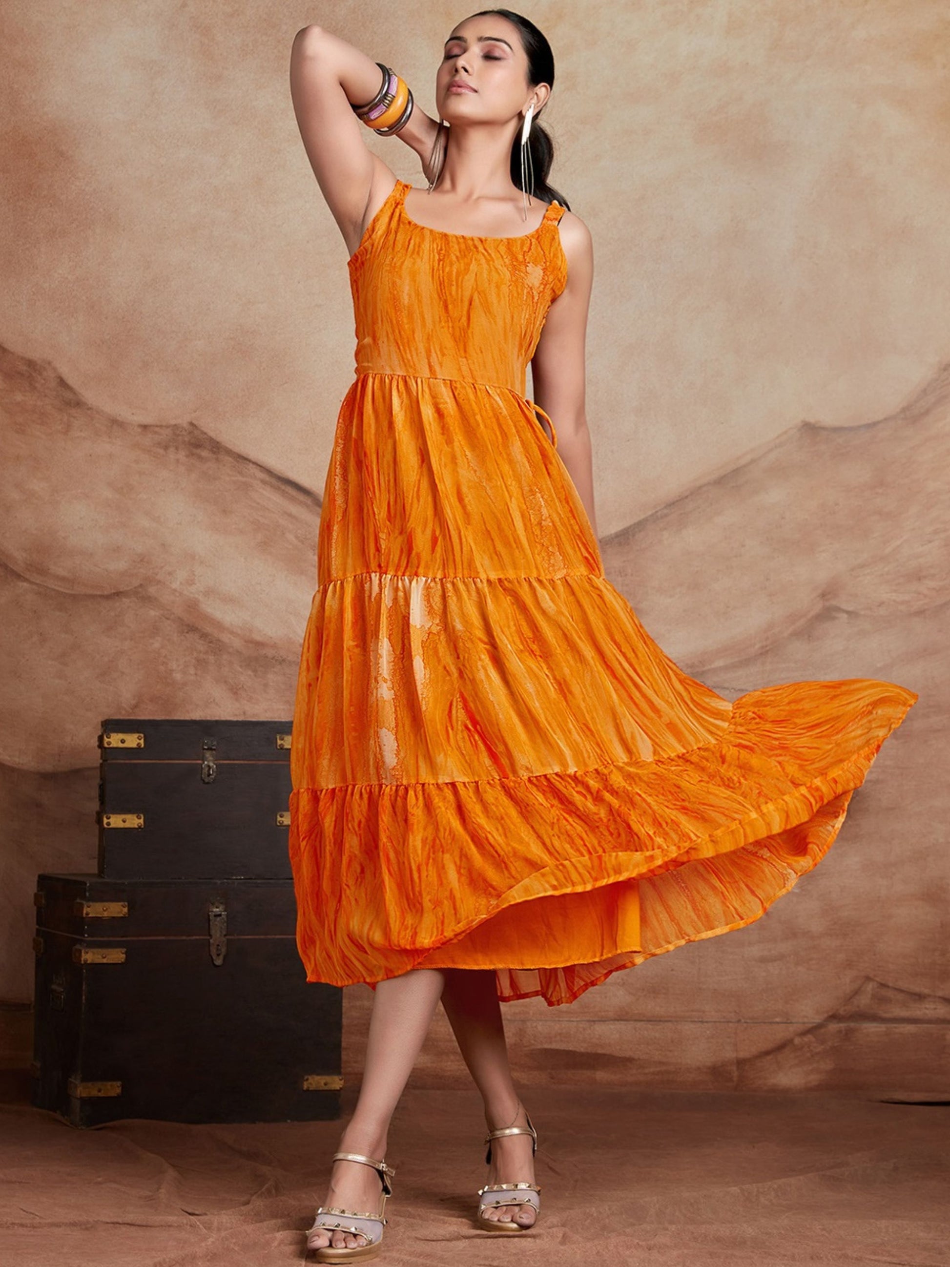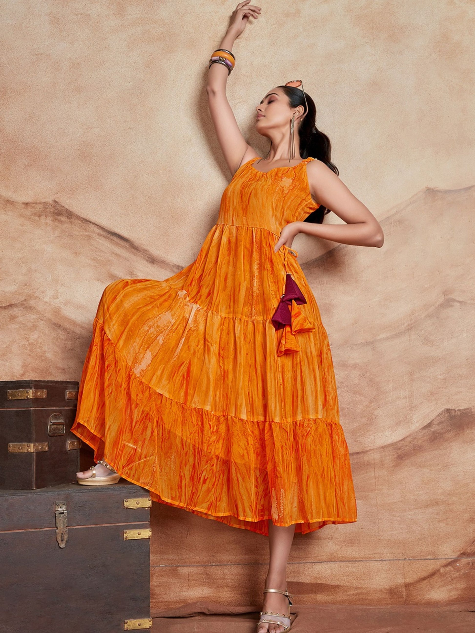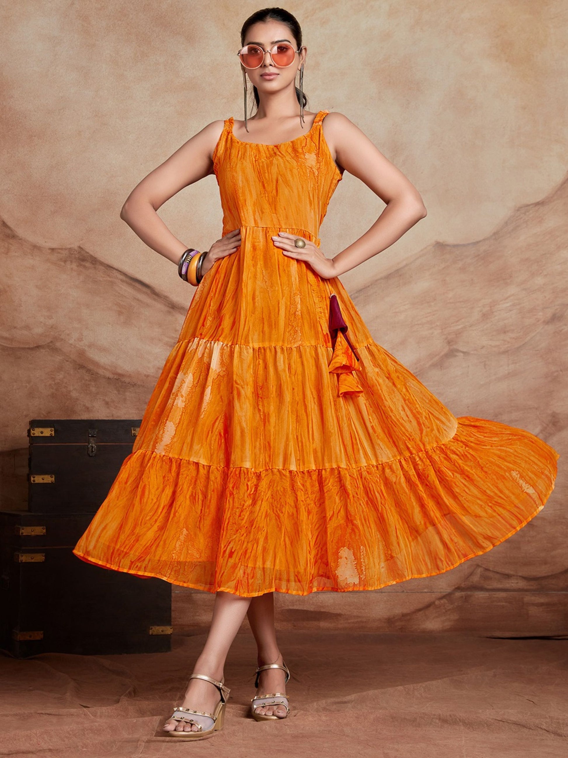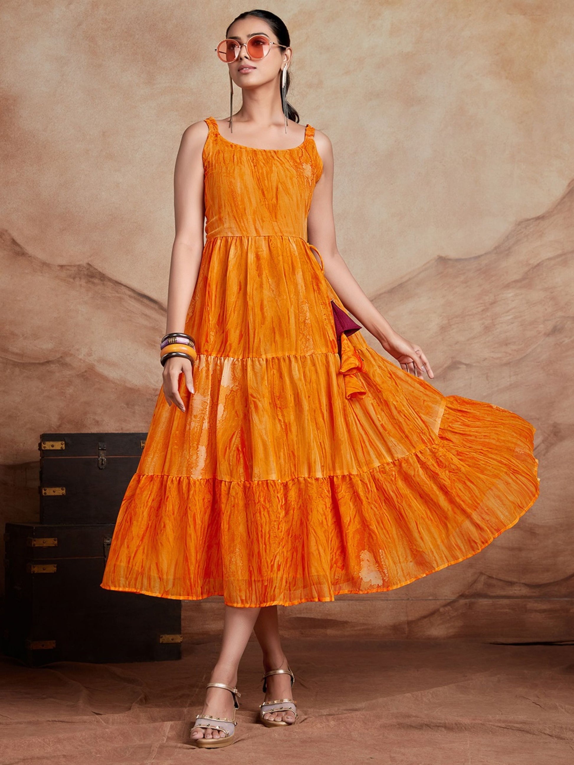 Orange Georgette Anarkali Digital Print Dress