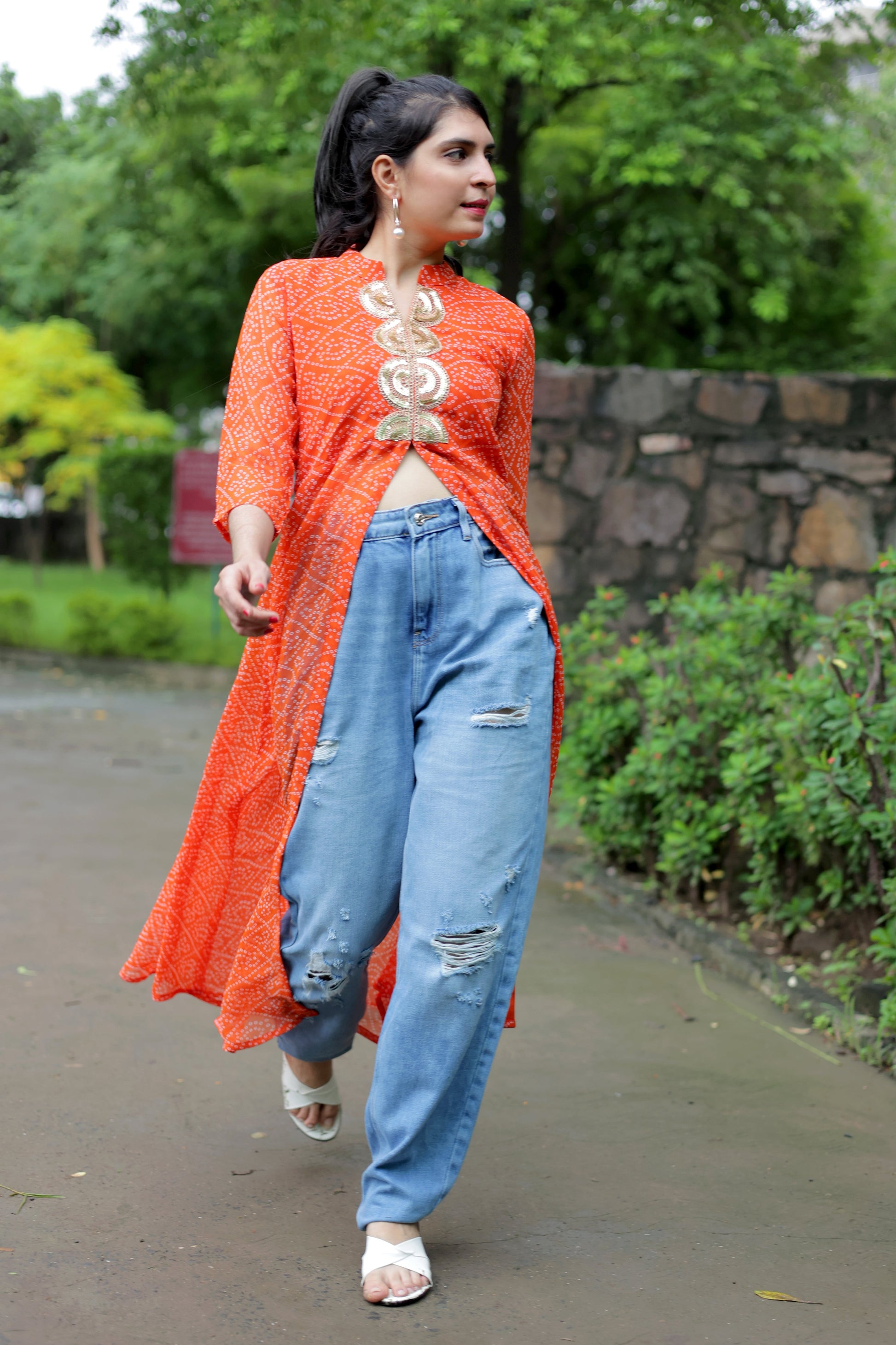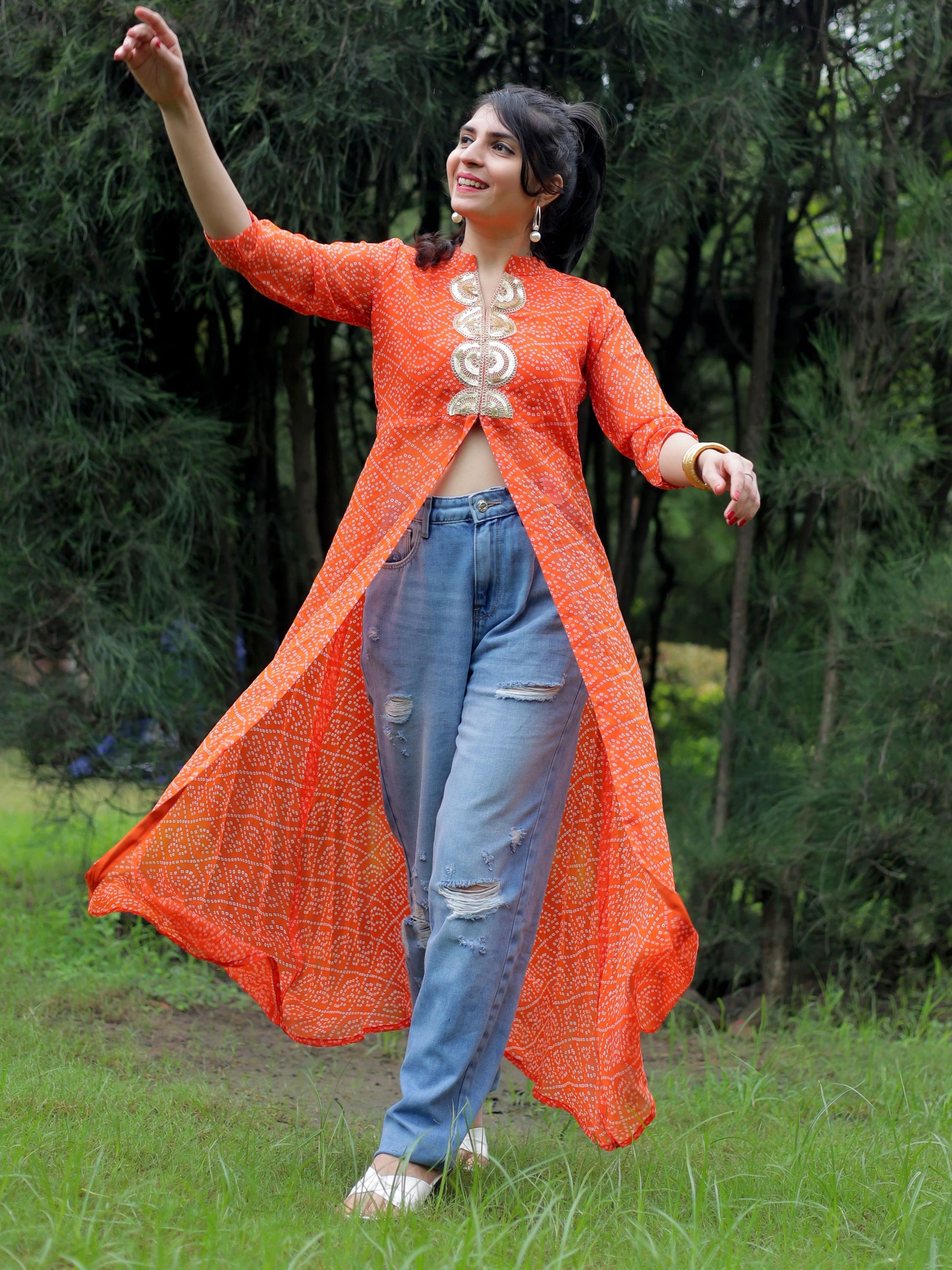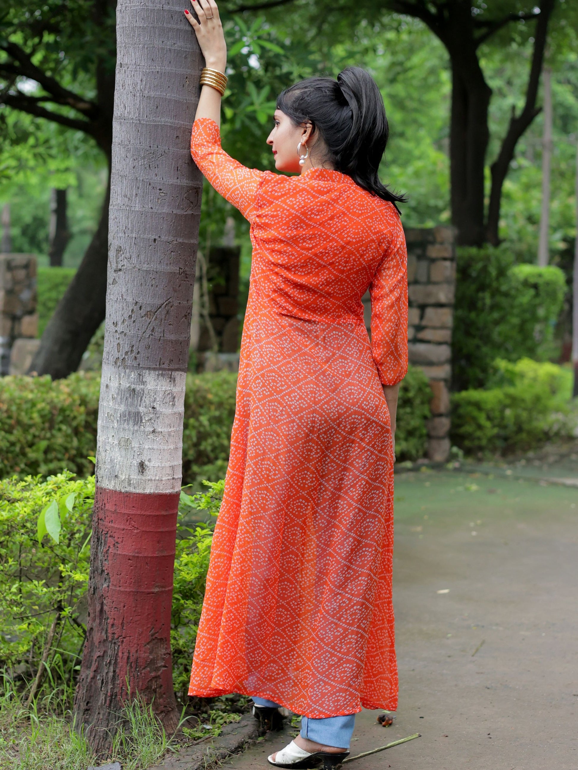 Georgette Bandhani Print Embroidery High front Slit Kurta