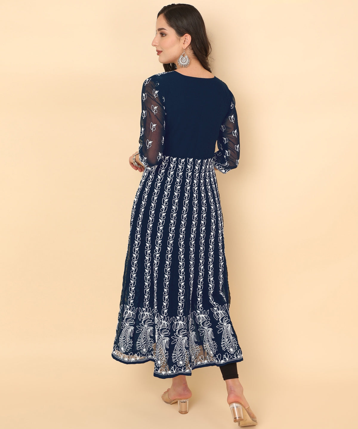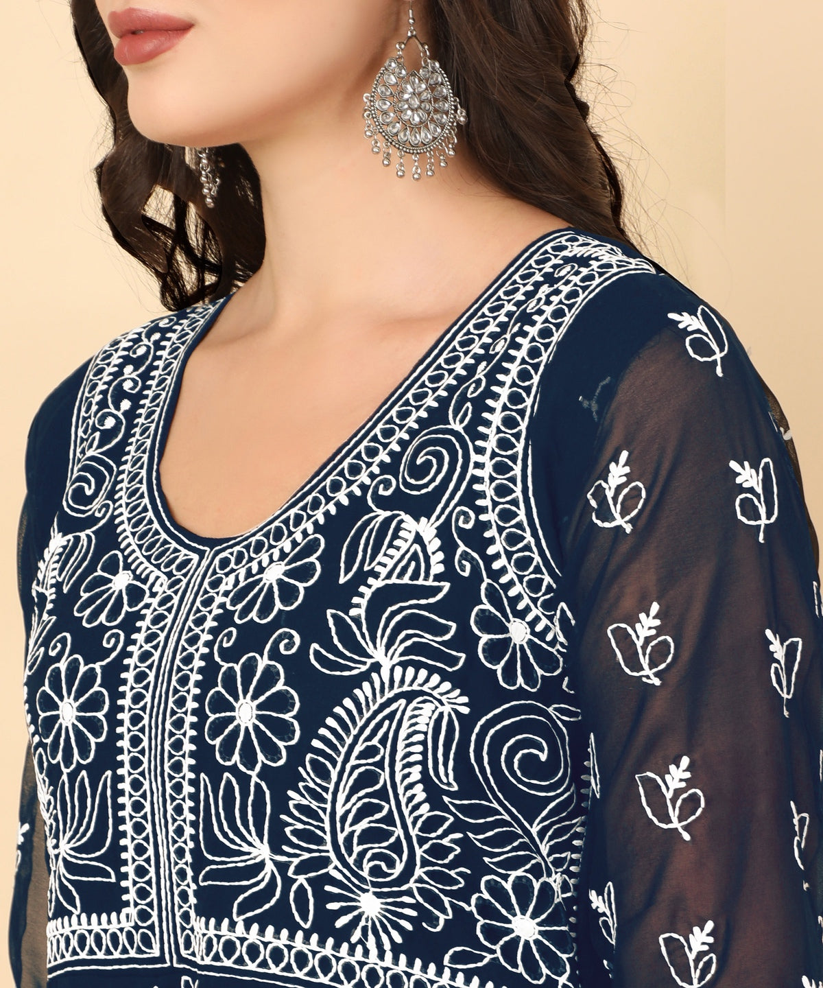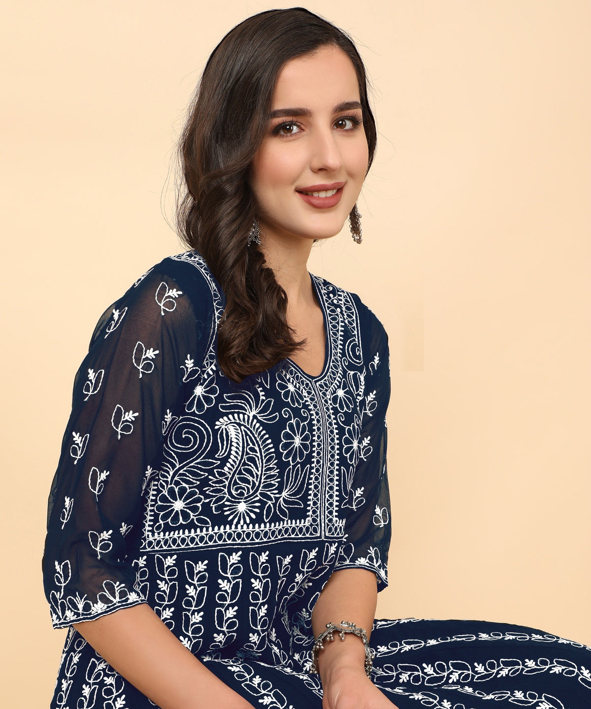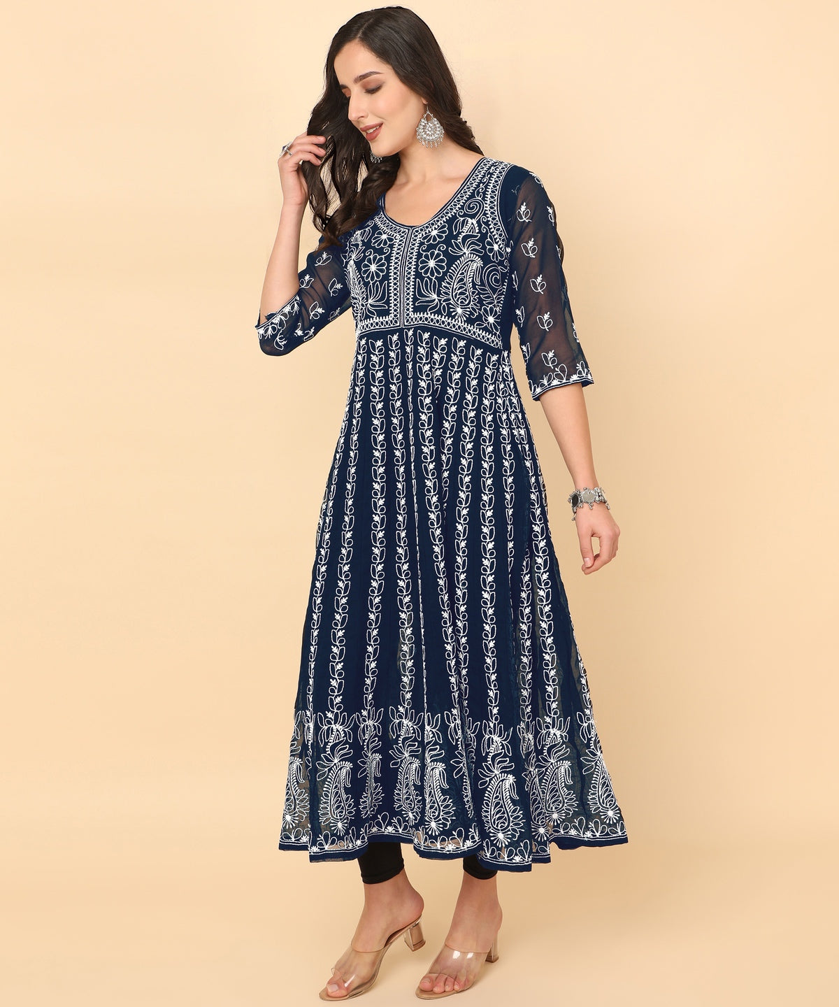 Navy Blue Georgette Chikankari Embroidered Anarkali Kurta