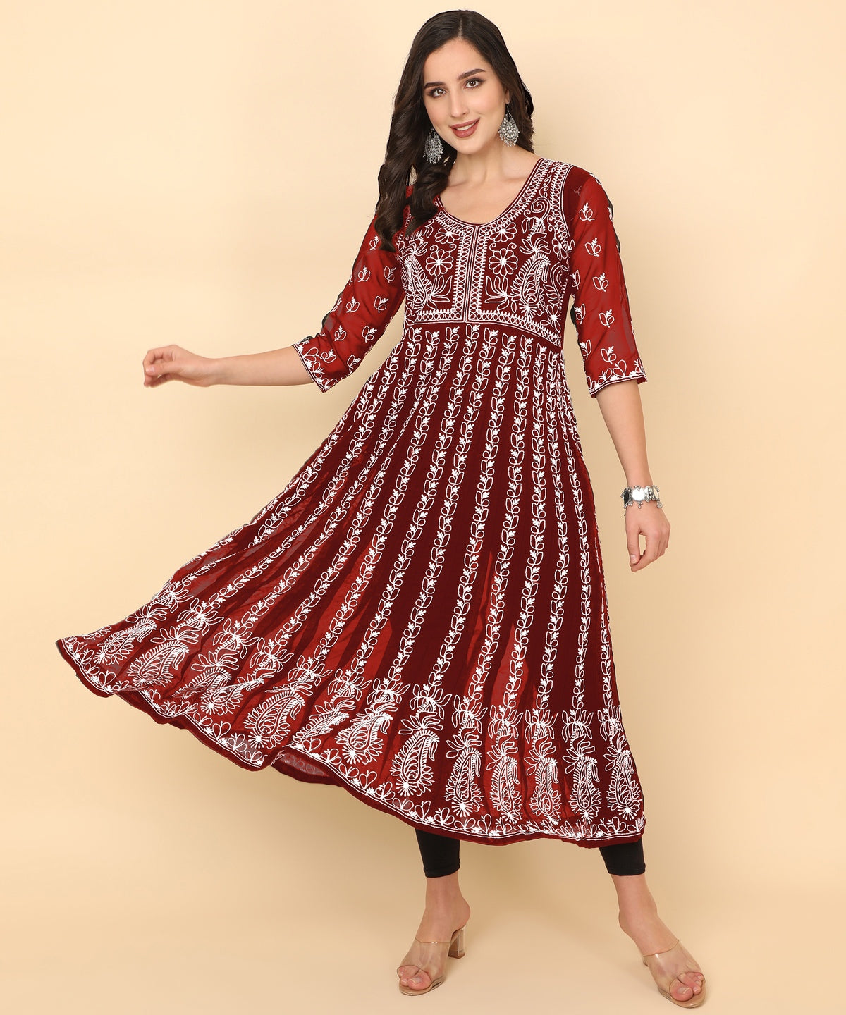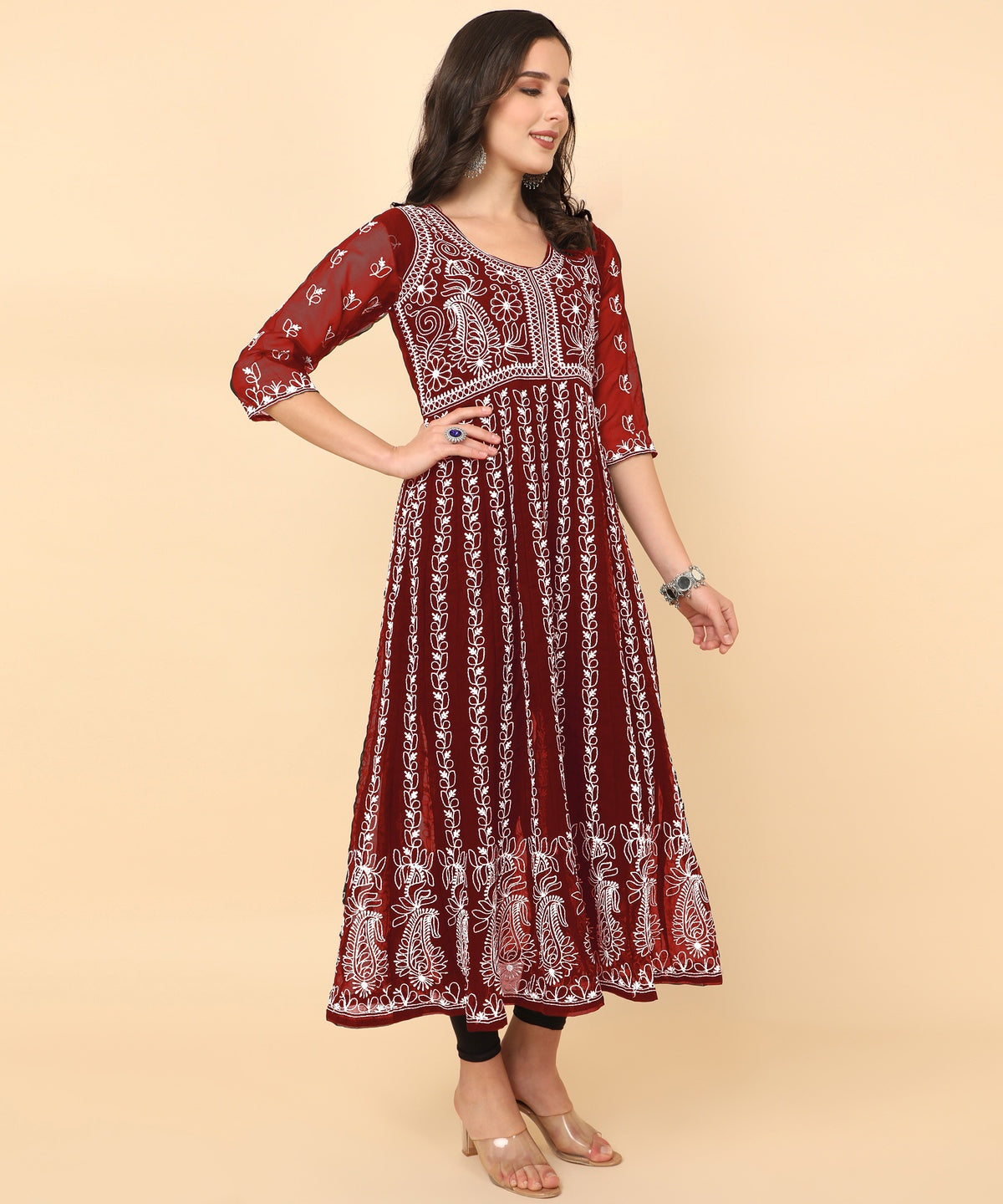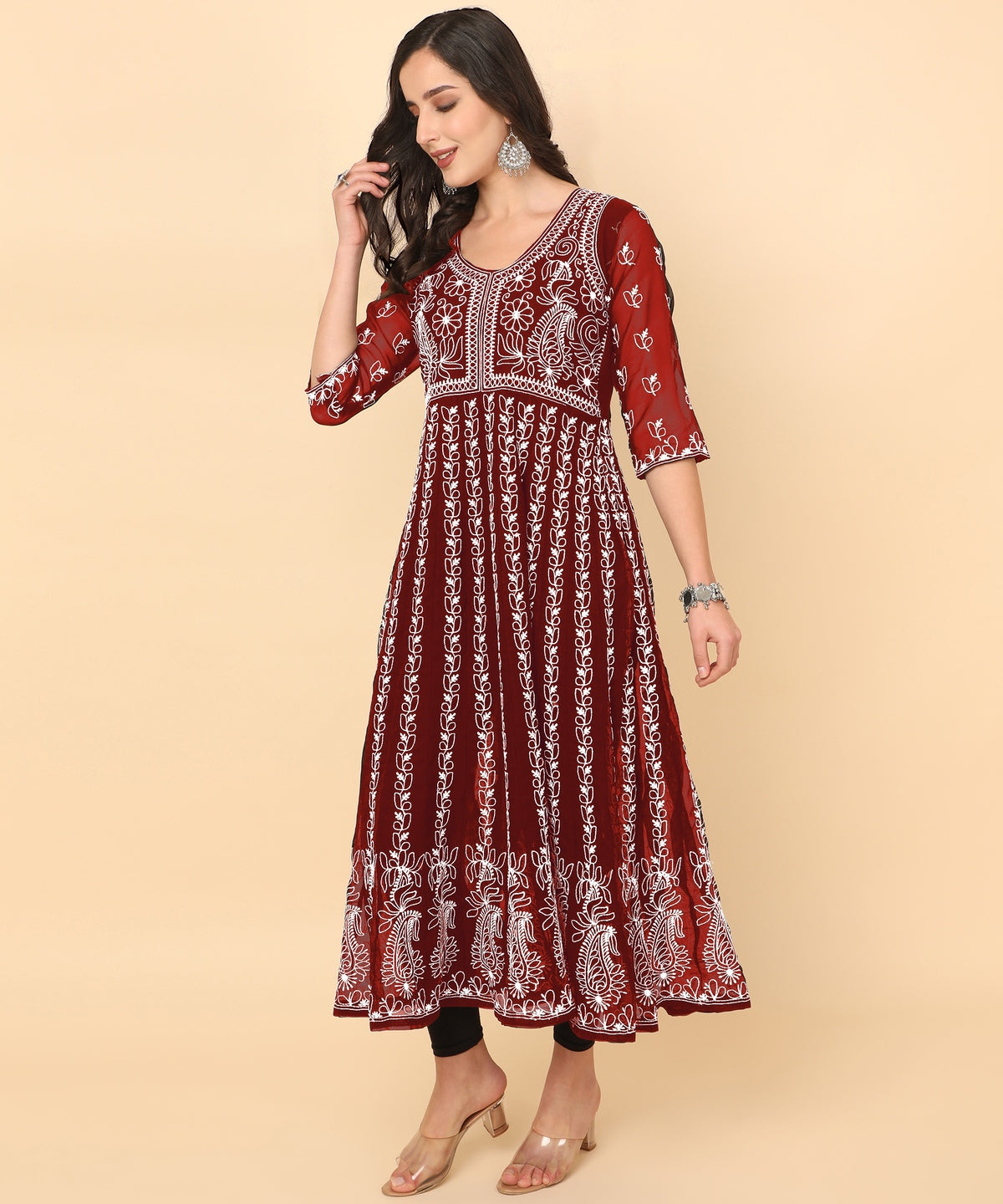 Rust Georgette Chikankari Embroidered Anarkali Kurta