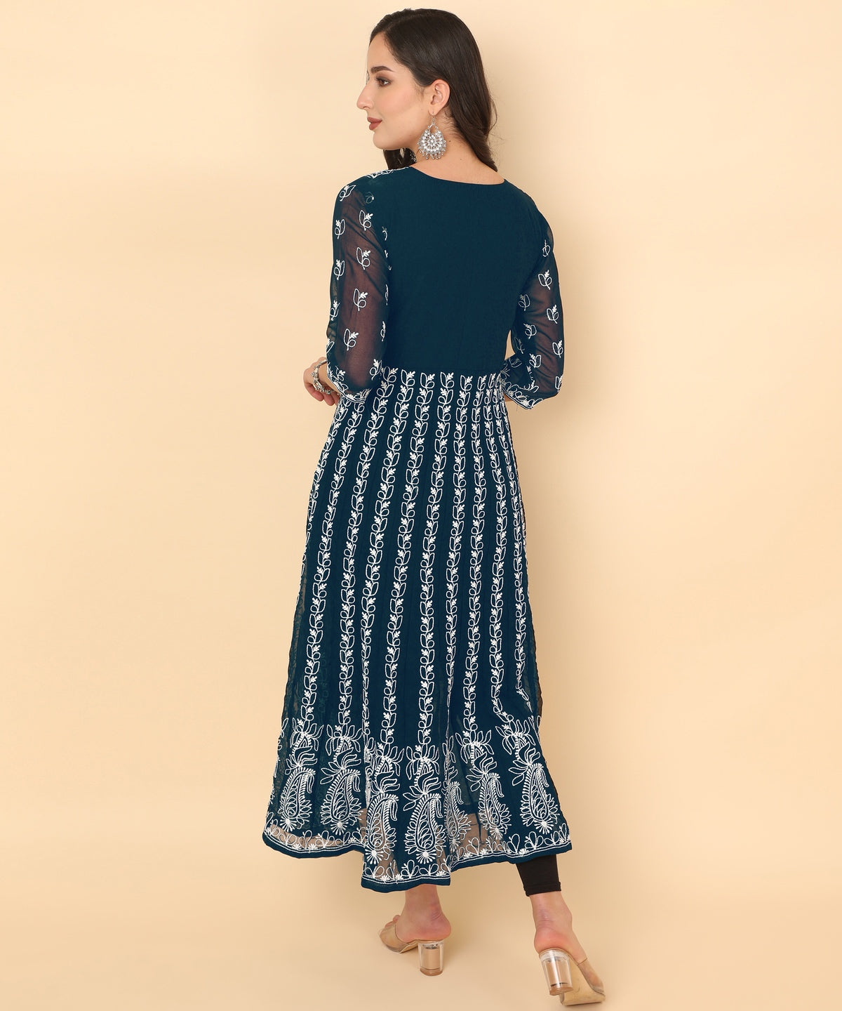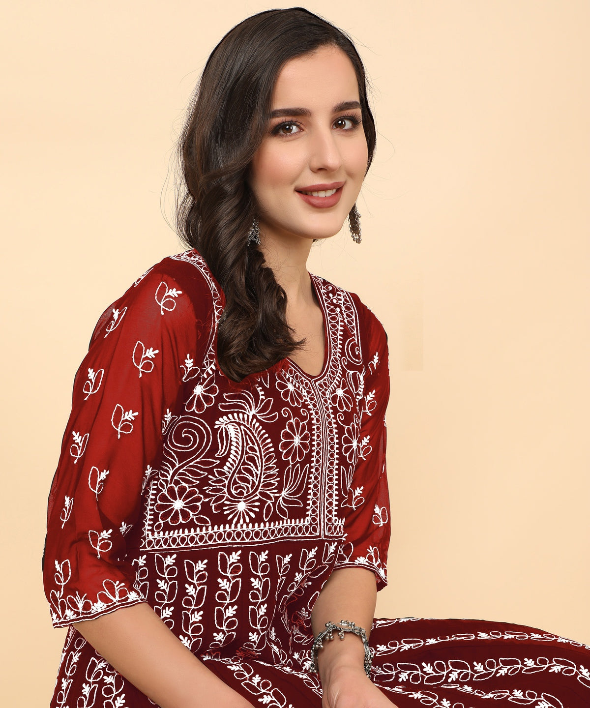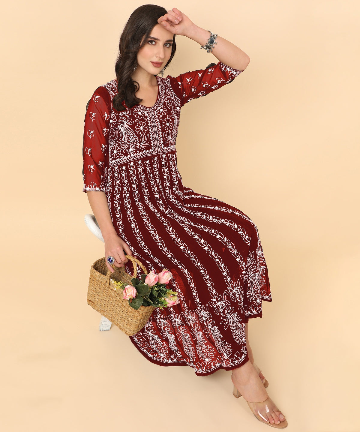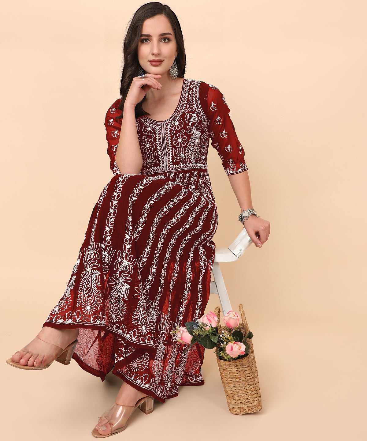Rust Georgette Chikankari Embroidered Anarkali Kurta