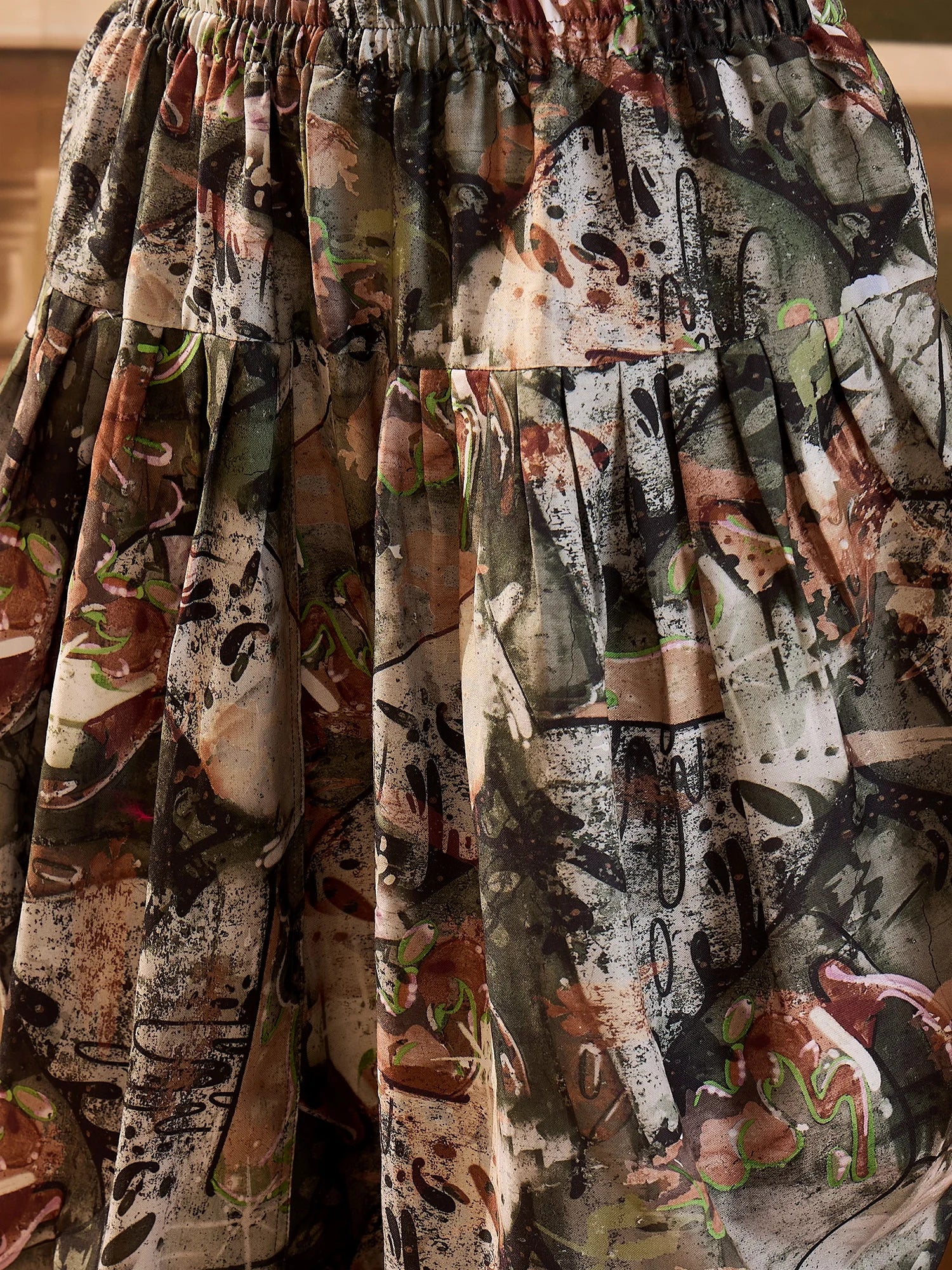 Green Poly Rayon Printed and Embroidered Assymetrical Cord Set