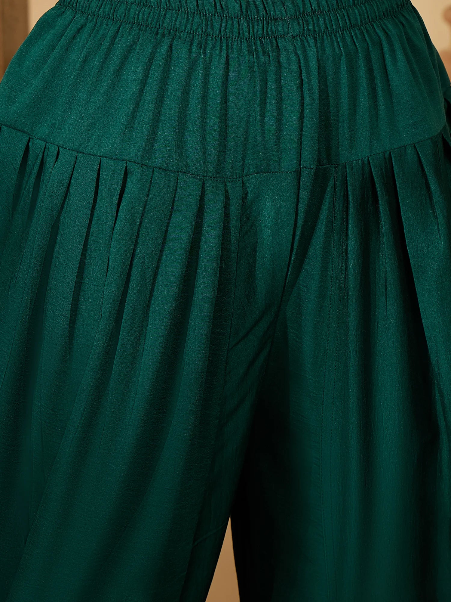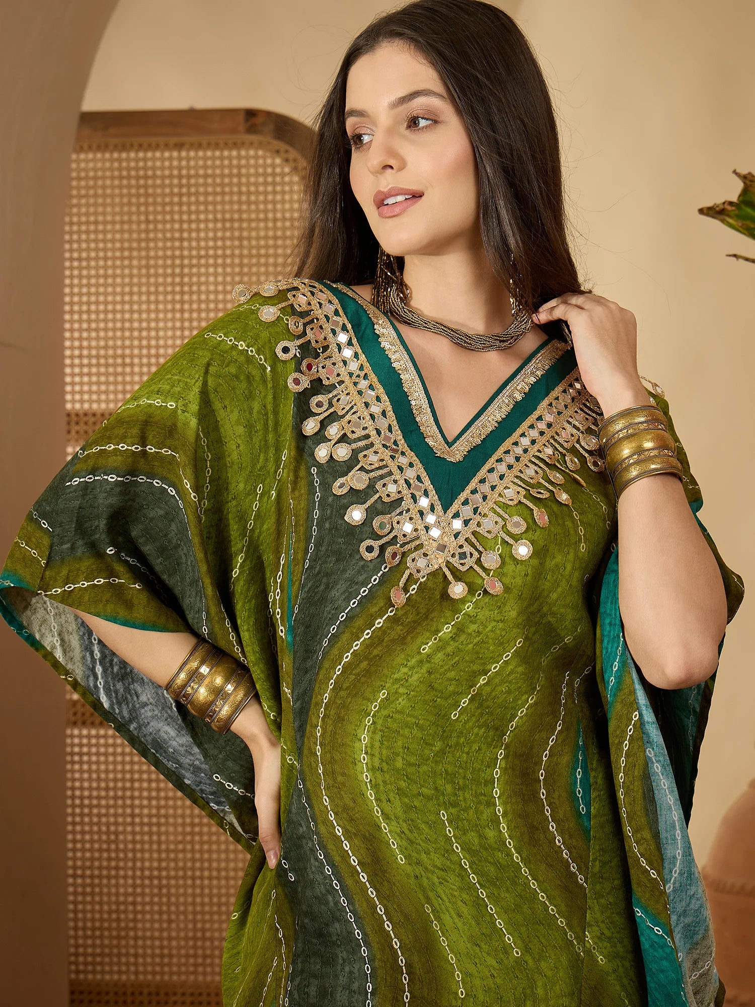 Elevate your ethnic wardrobe with this stunning Rayon Embroidered Kaftan Kurta Dhoti Set for women. Crafted from soft and breathable rayon fabric, this ensemble features a flowy kaftan-style kurta adorned with intricate embroidery and sequin detailing around the neckline and hem. Paired with a matching dhoti pant, the outfit offers comfort with a touch of elegance — perfect for festive occasions, mehendi functions, or intimate celebrations. The relaxed silhouette flatters all body types, while the earthy green tones add a vibrant yet graceful charm.