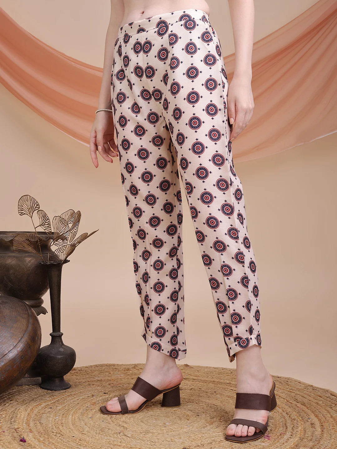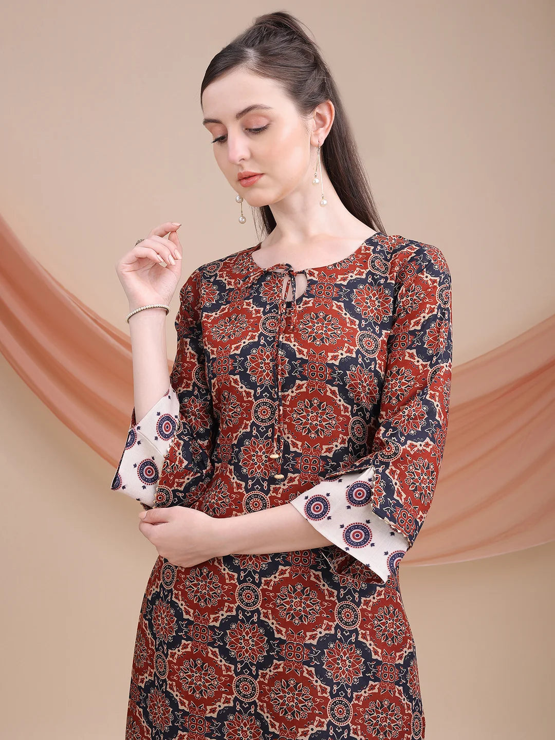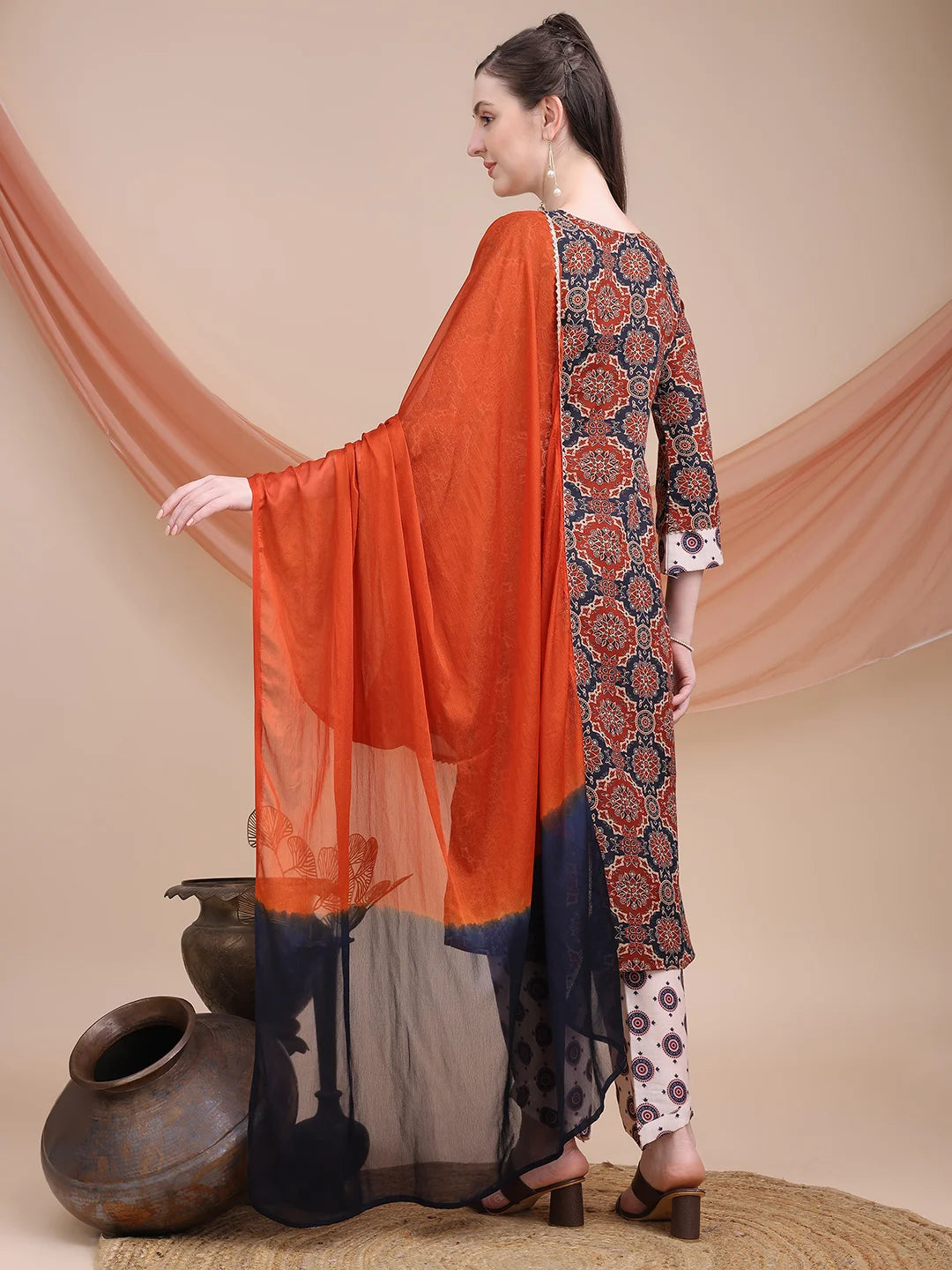 Maroon Cotton Blend Ajrak Print A-line Kurta Salwar With Dupatta