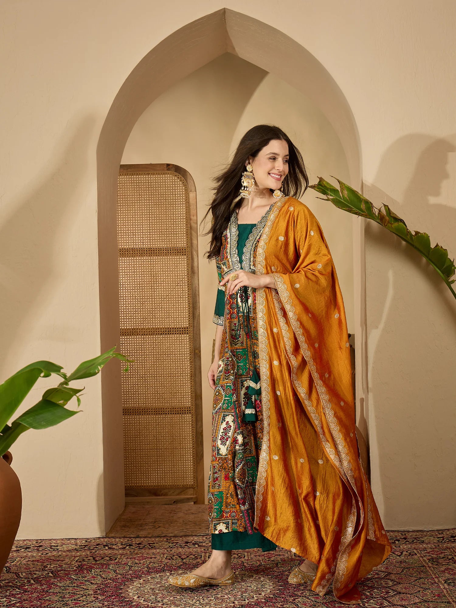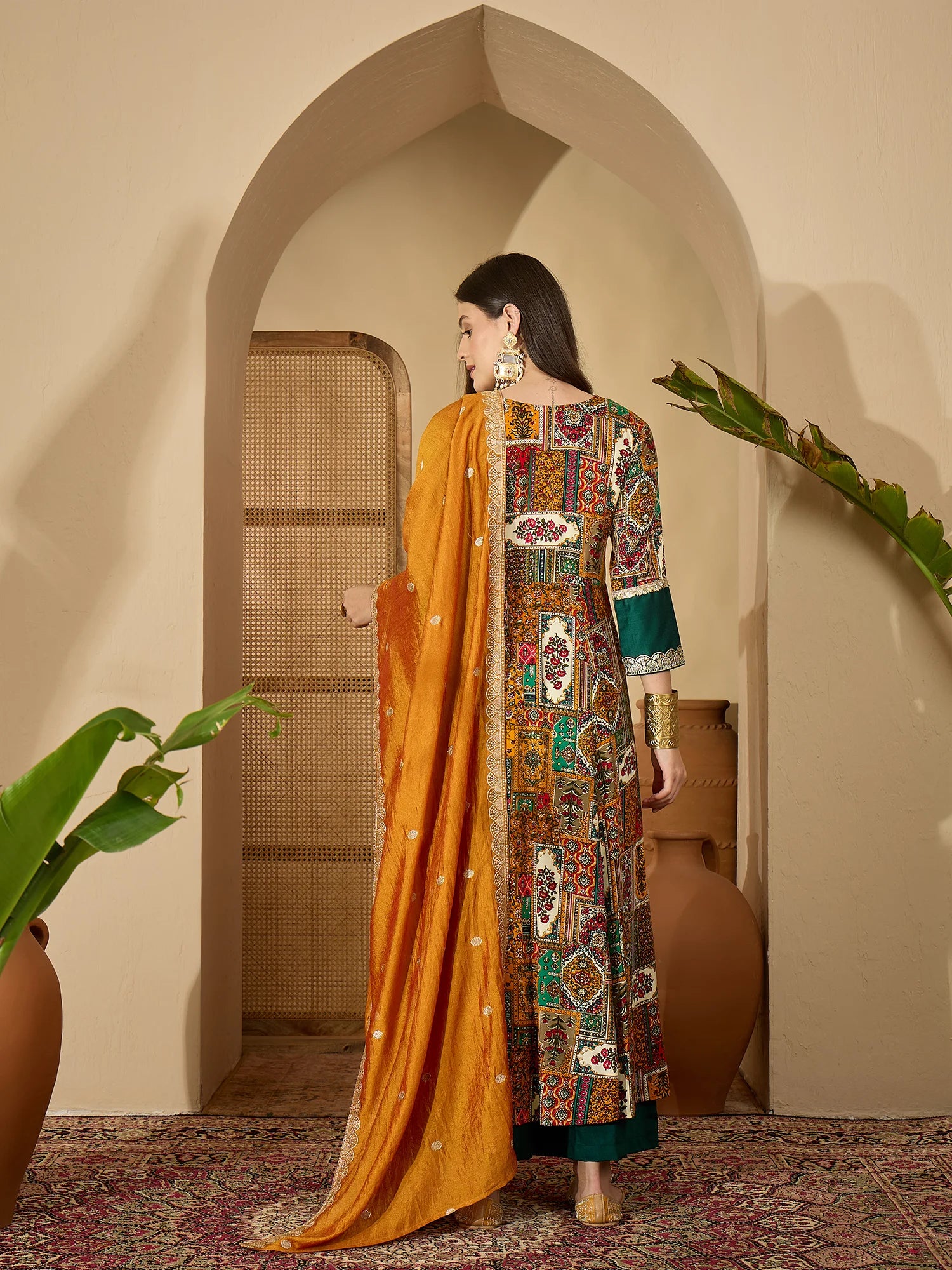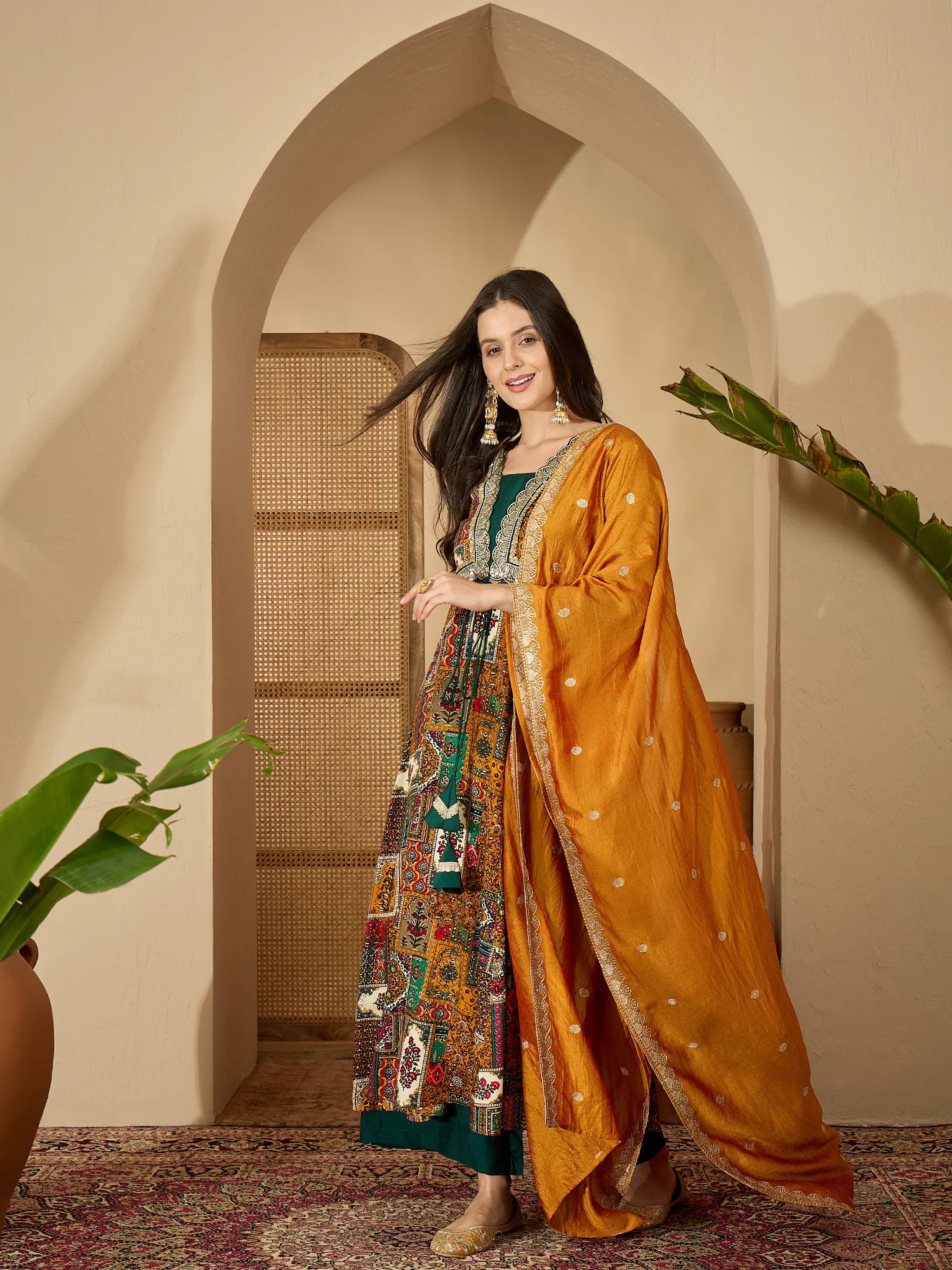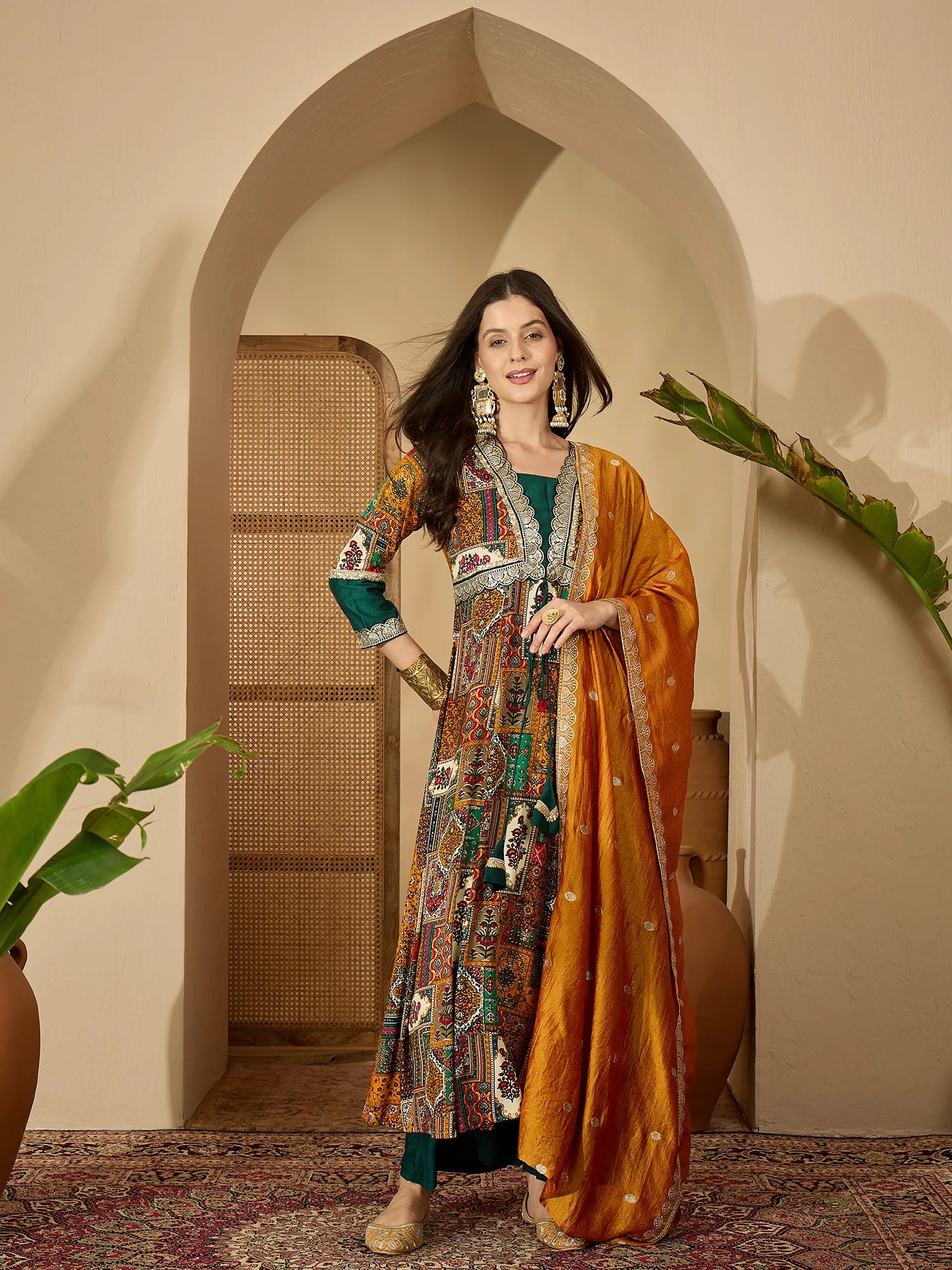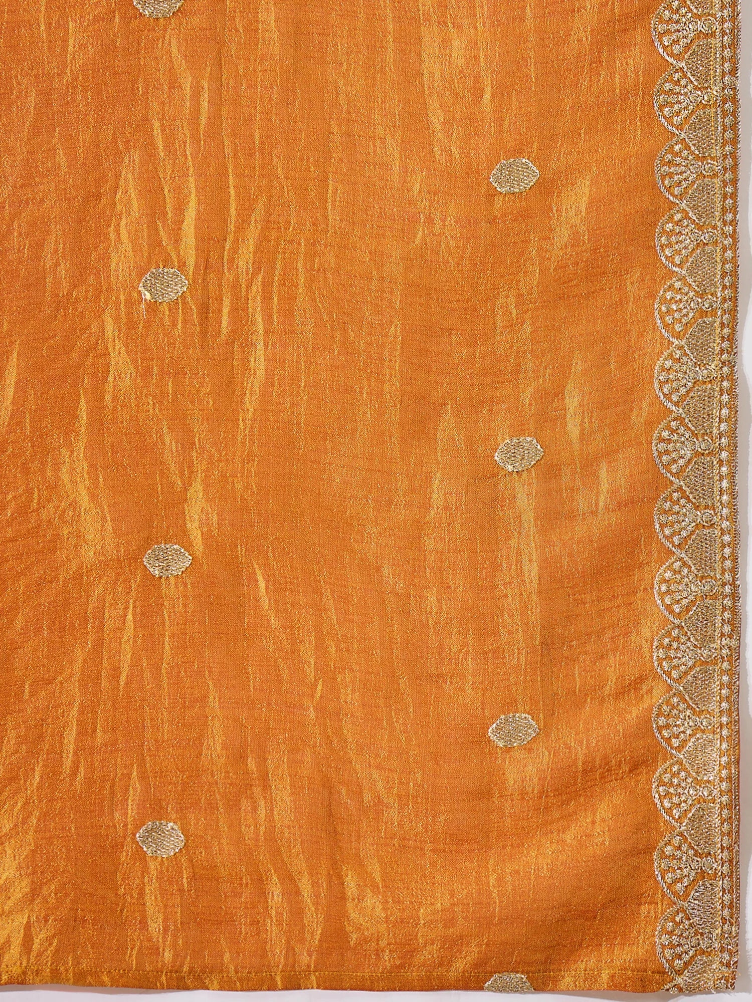 Mustard Viscose Rayon Embroidered Anarkali Kurta Palazzo with Dupatta Set