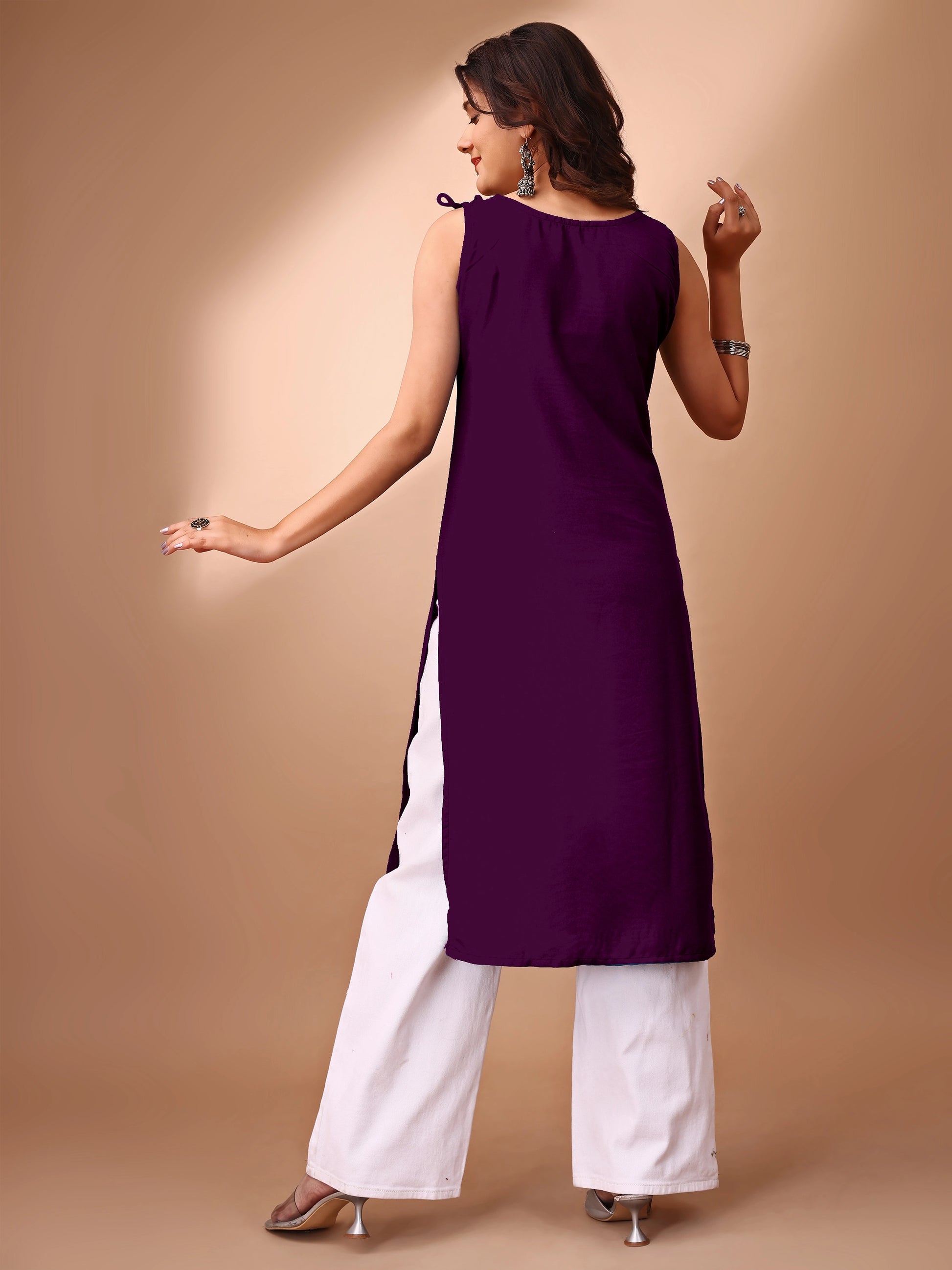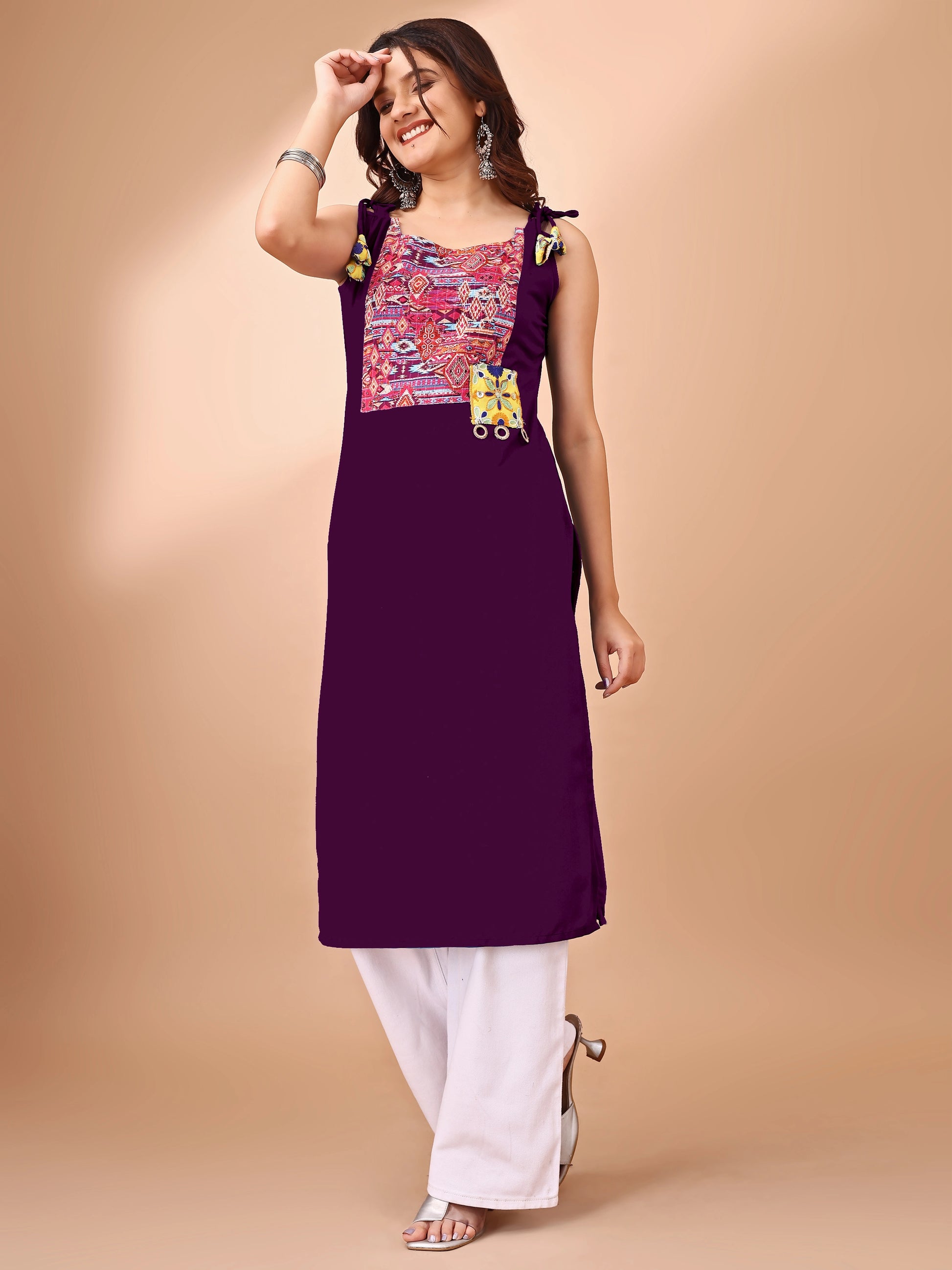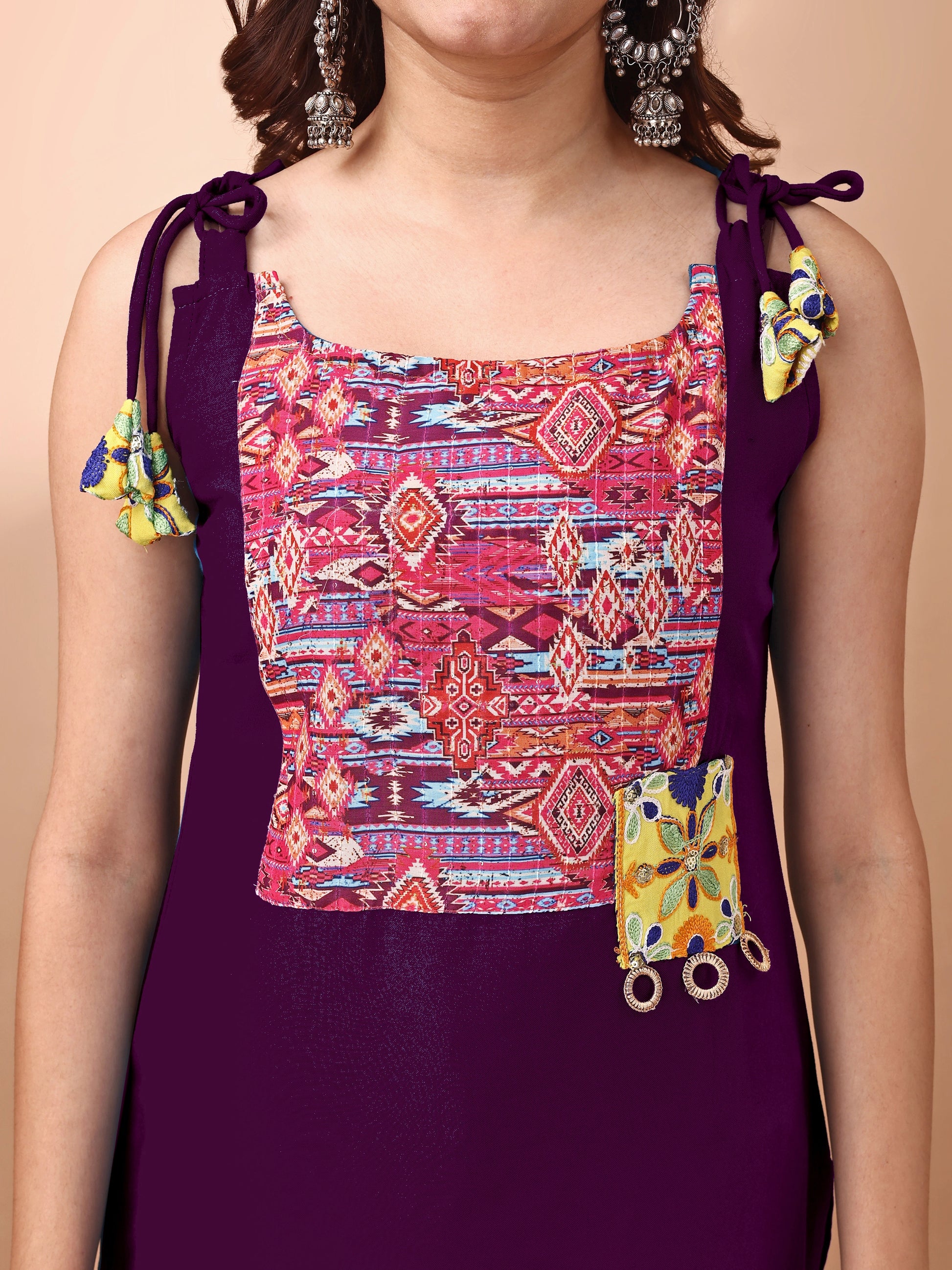 Wine Rayon Patch Work Shouler Strep Sleeveless Kurta