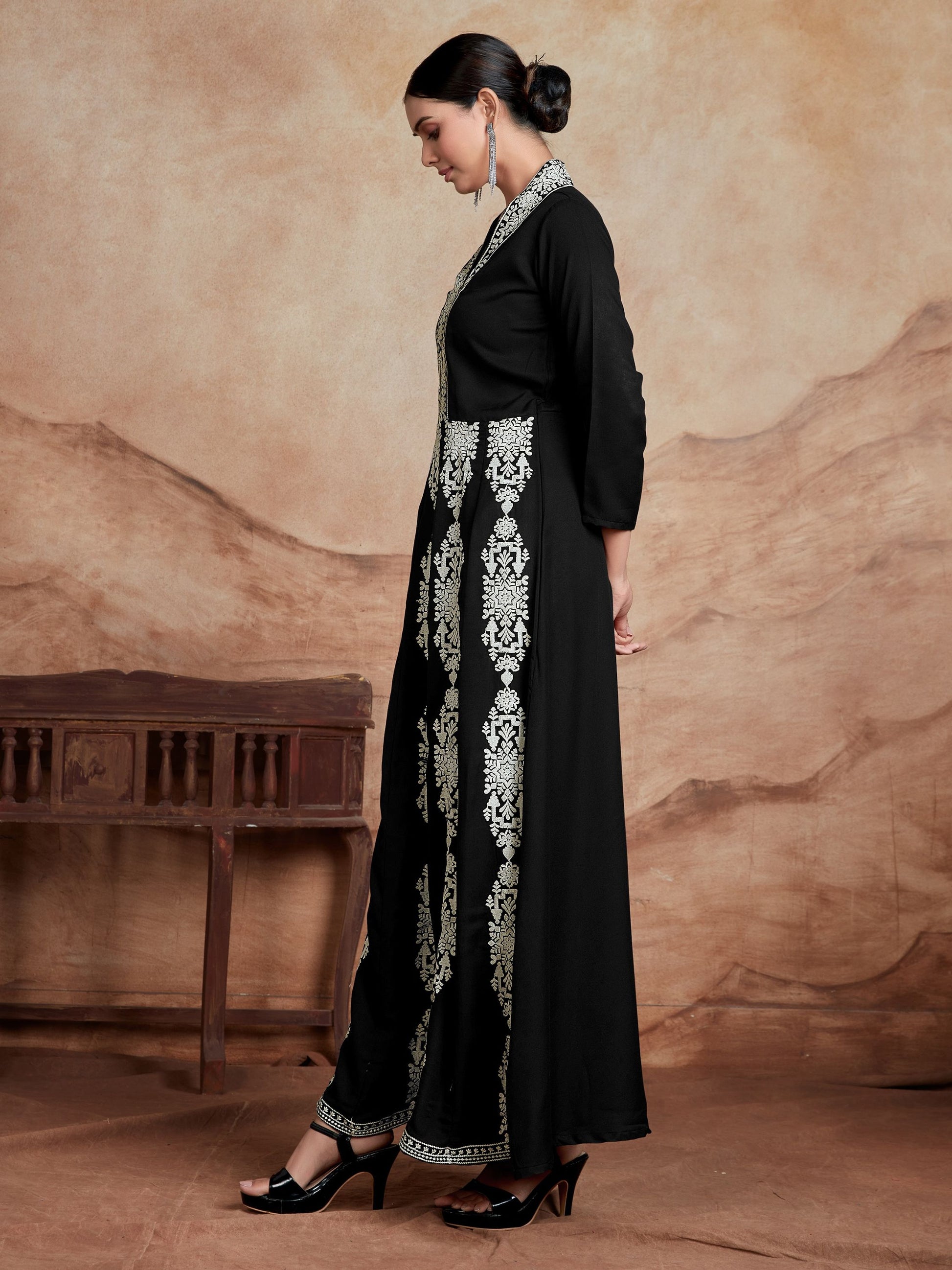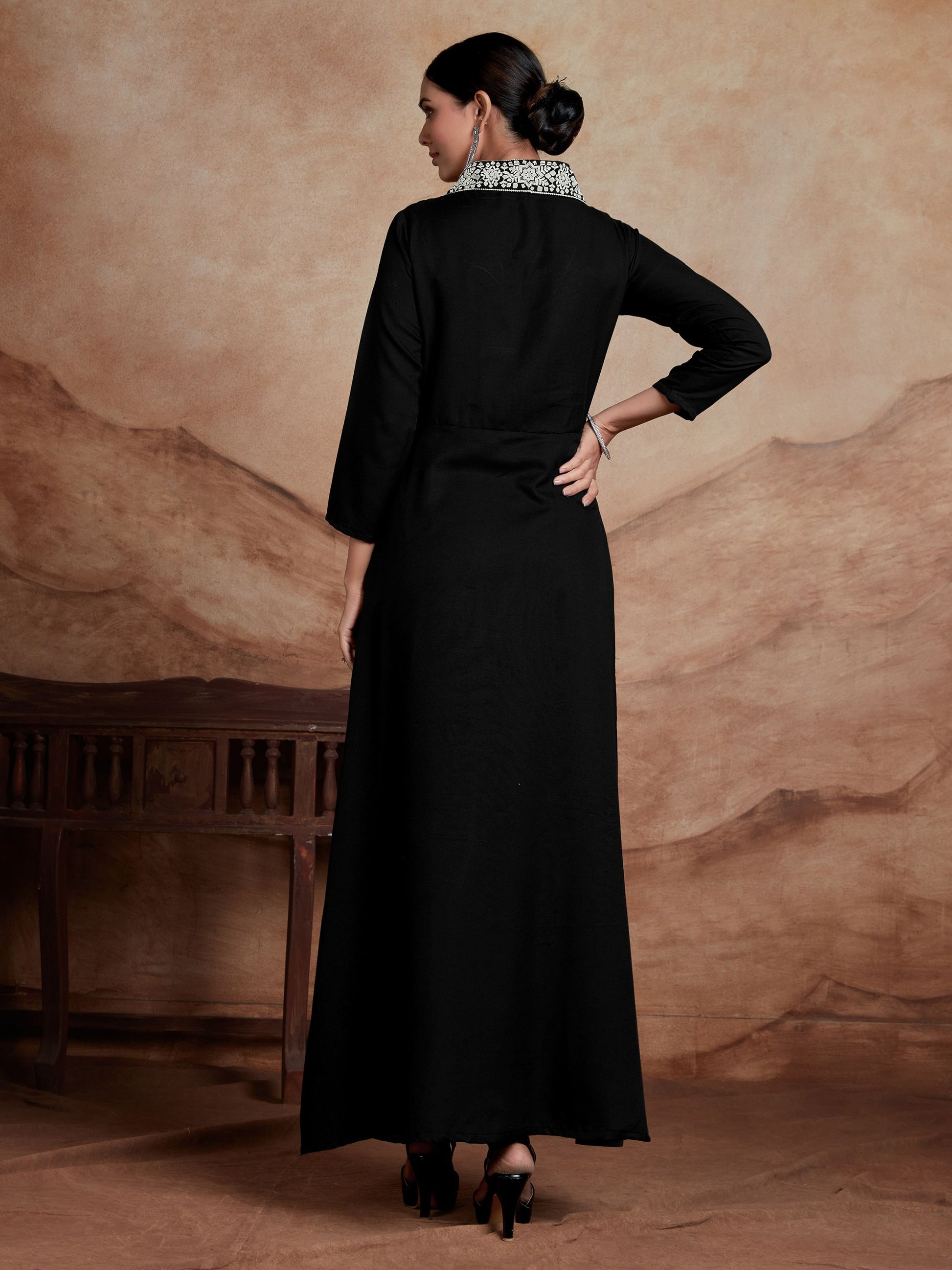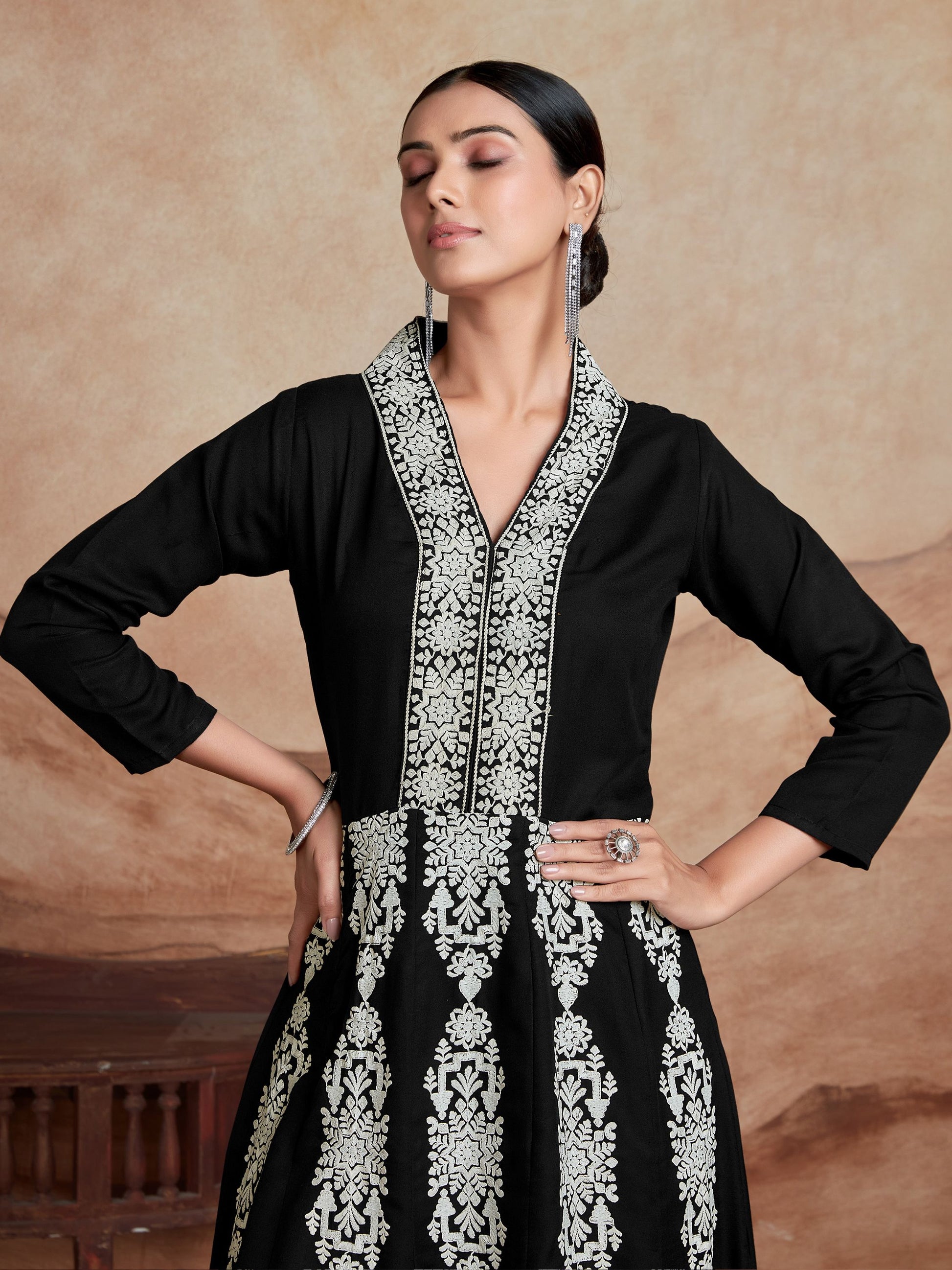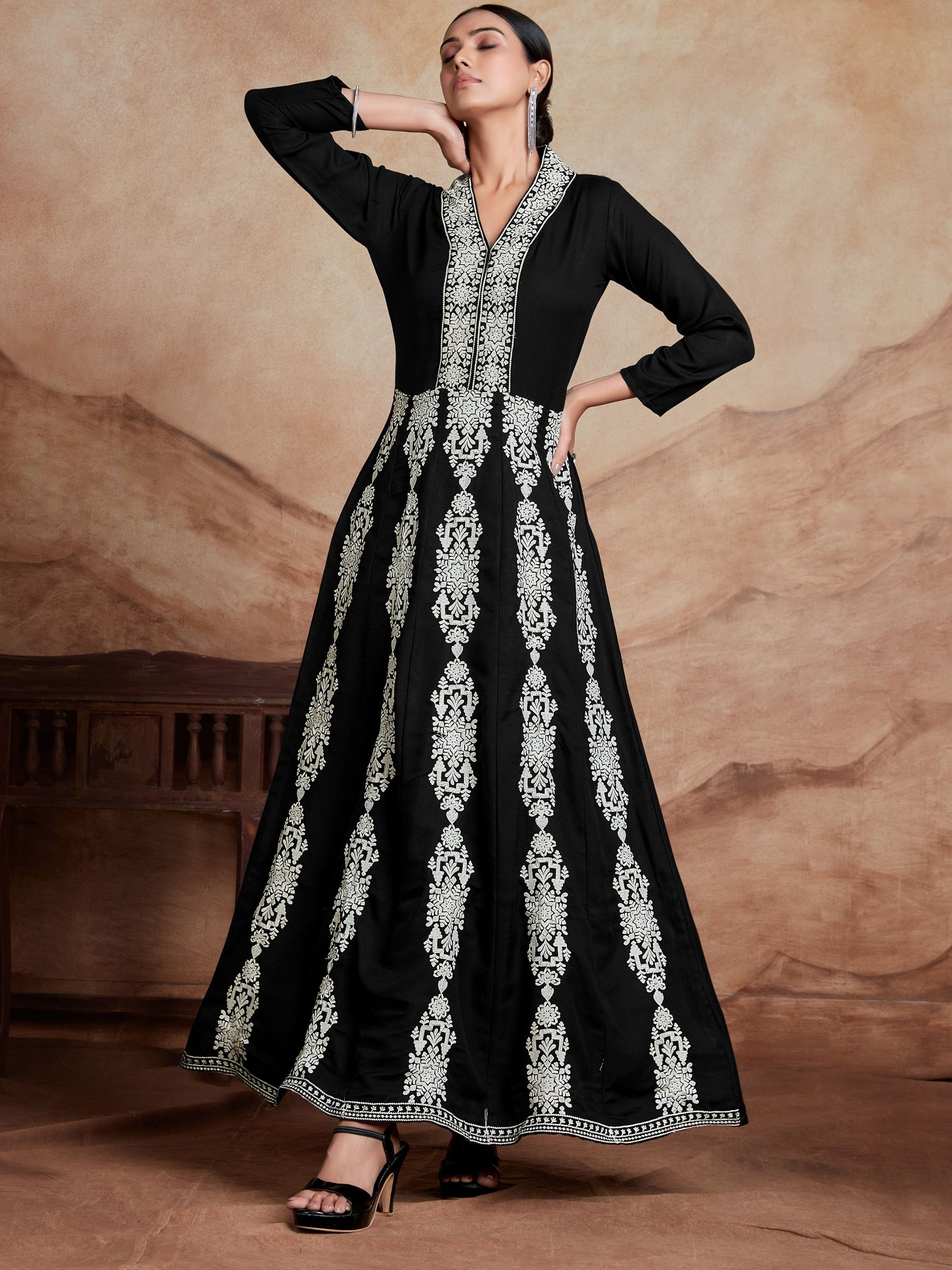 Black Rayon Chikankari Embroidery Work Anarkali Dress