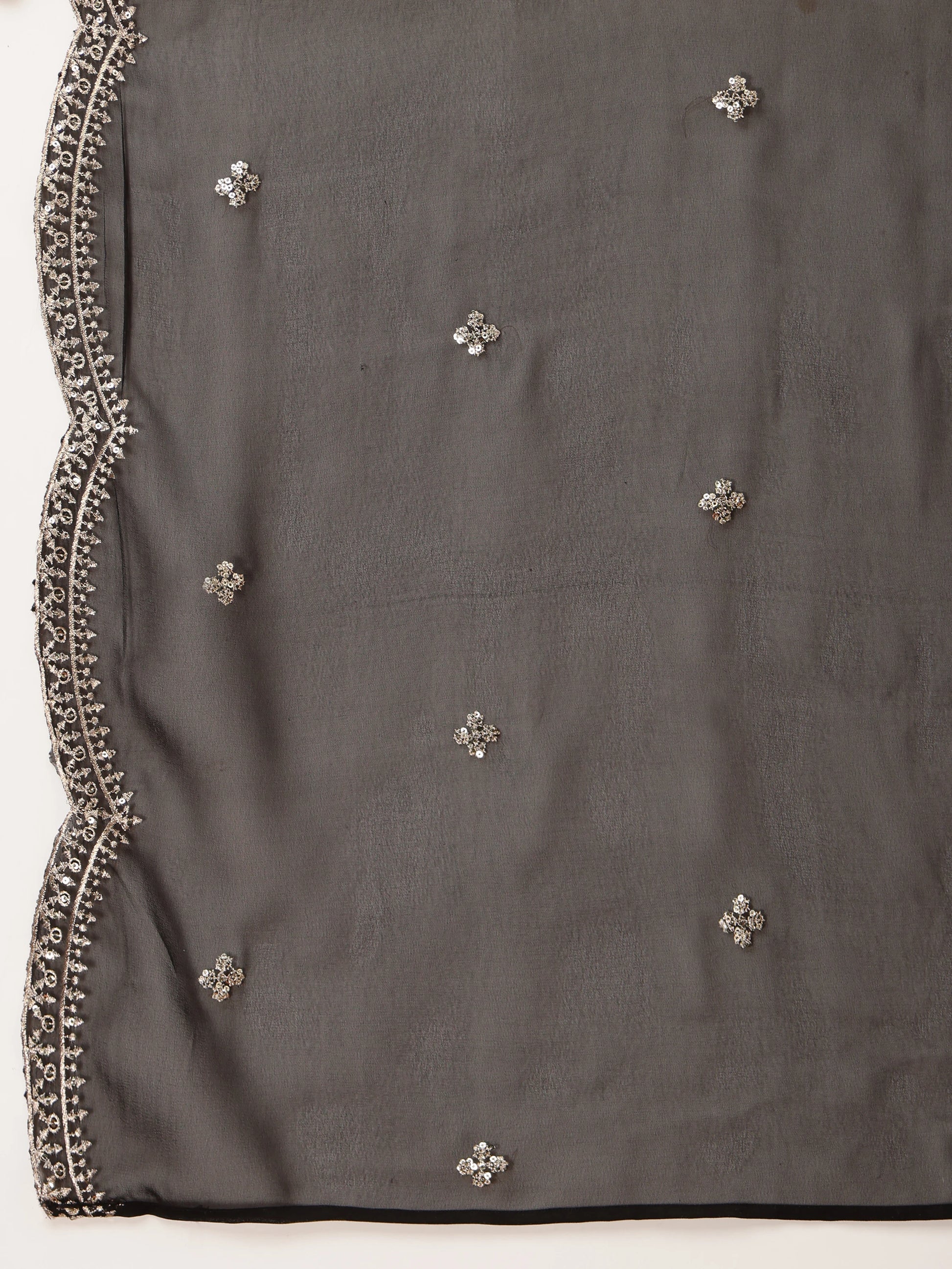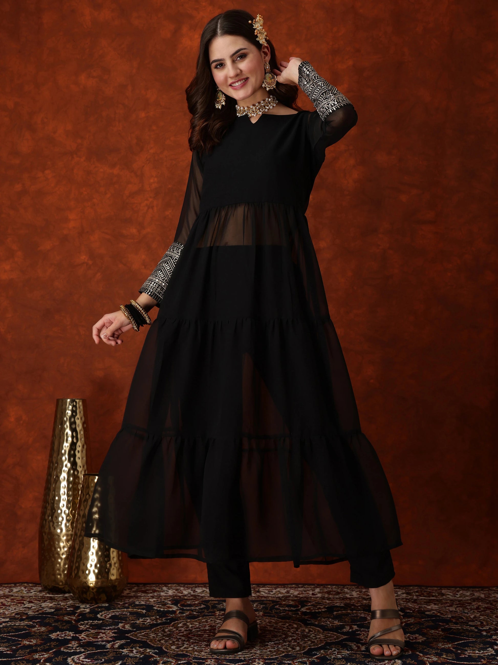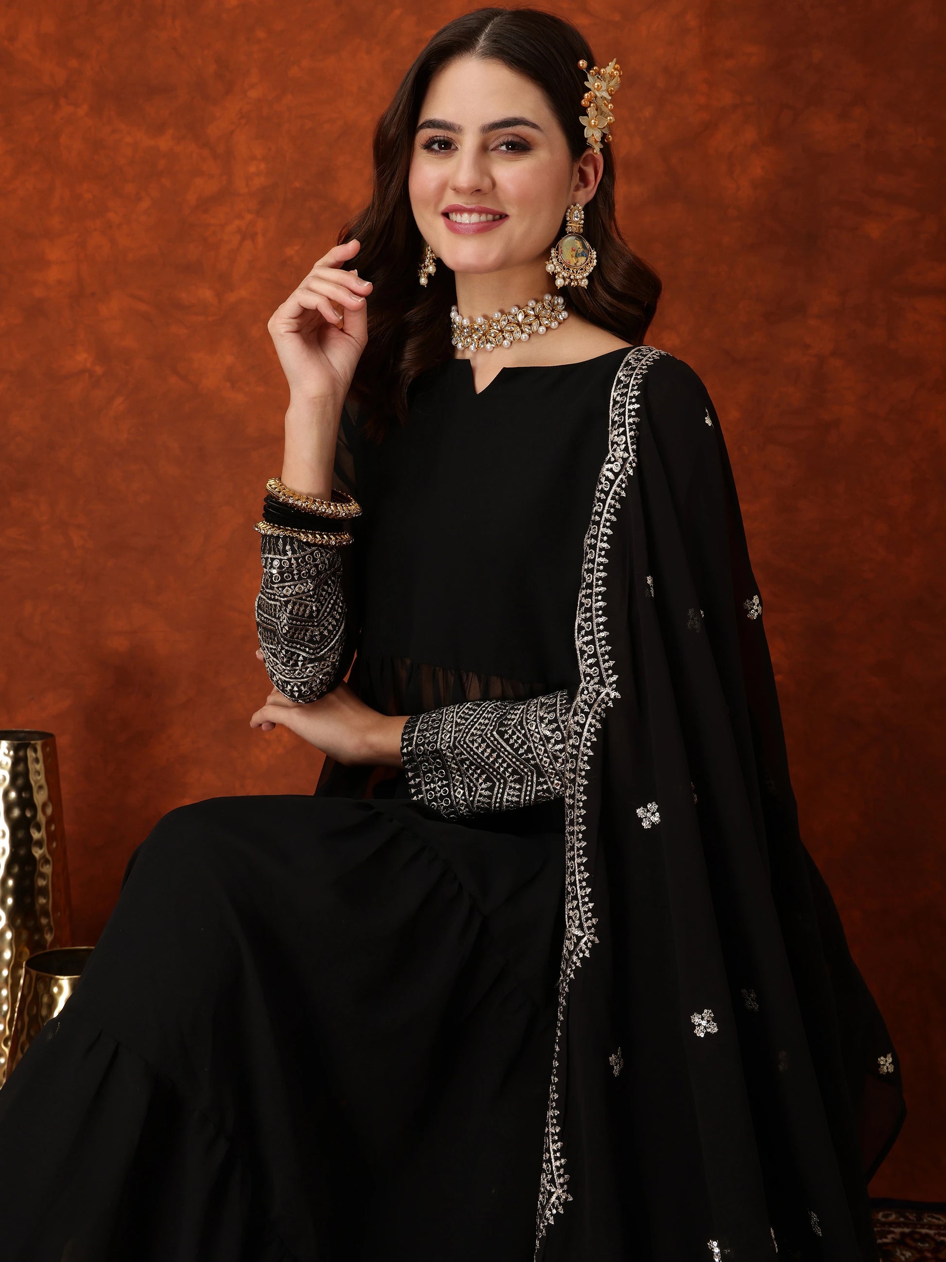 Black Georgette Embroidered Anarkali Kurta Pant with Dupatta Set