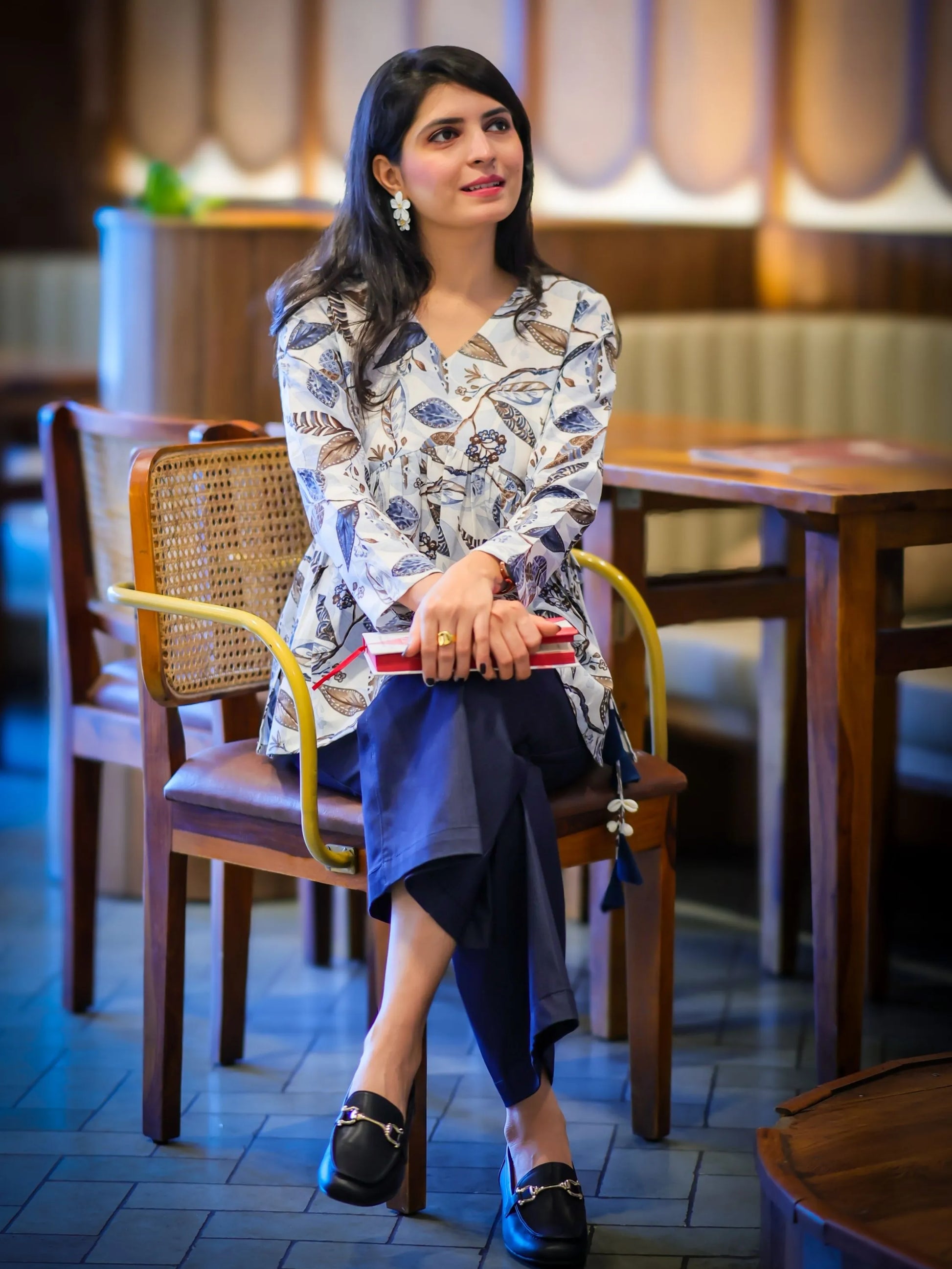 Step into effortless ethnic charm with this vibrant Teal floral print short kurti. Designed with side tassels and flattering flare, it blends comfort with festive flair. A stylish pick for casual days or traditional occasions.