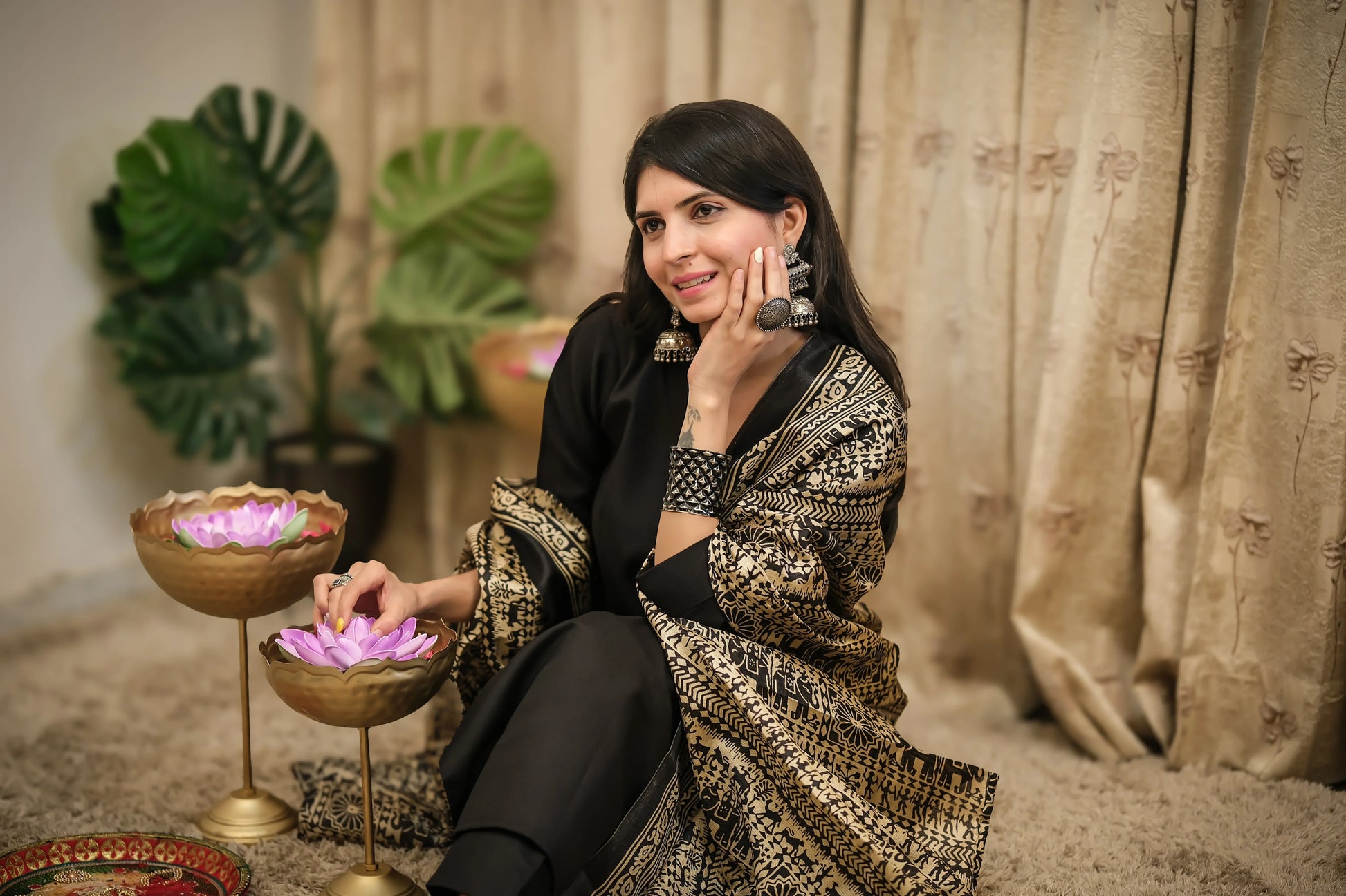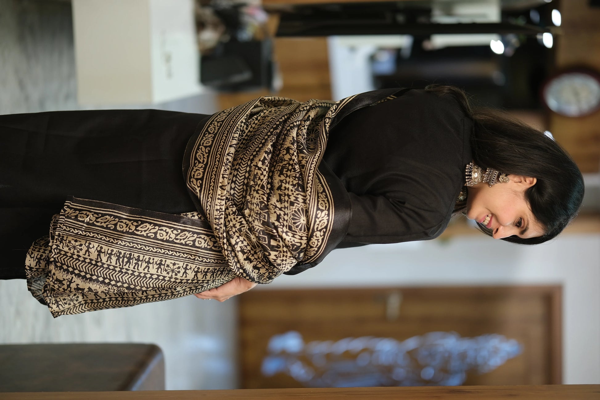 Turn heads at any occasion with this women’s black Cotton Blend Solid straight kurta pant with dupatta set. The Roll Up Sleeves design and elegant Solid add a modern touch to the classic ethnic style. Crafted from lightweight Cotton Blend fabric, this festival kurta set ensures comfort and sophistication. Perfect for festive events, parties, or evening celebrations, this black ethnic set for women brings effortless charm and timeless appeal.