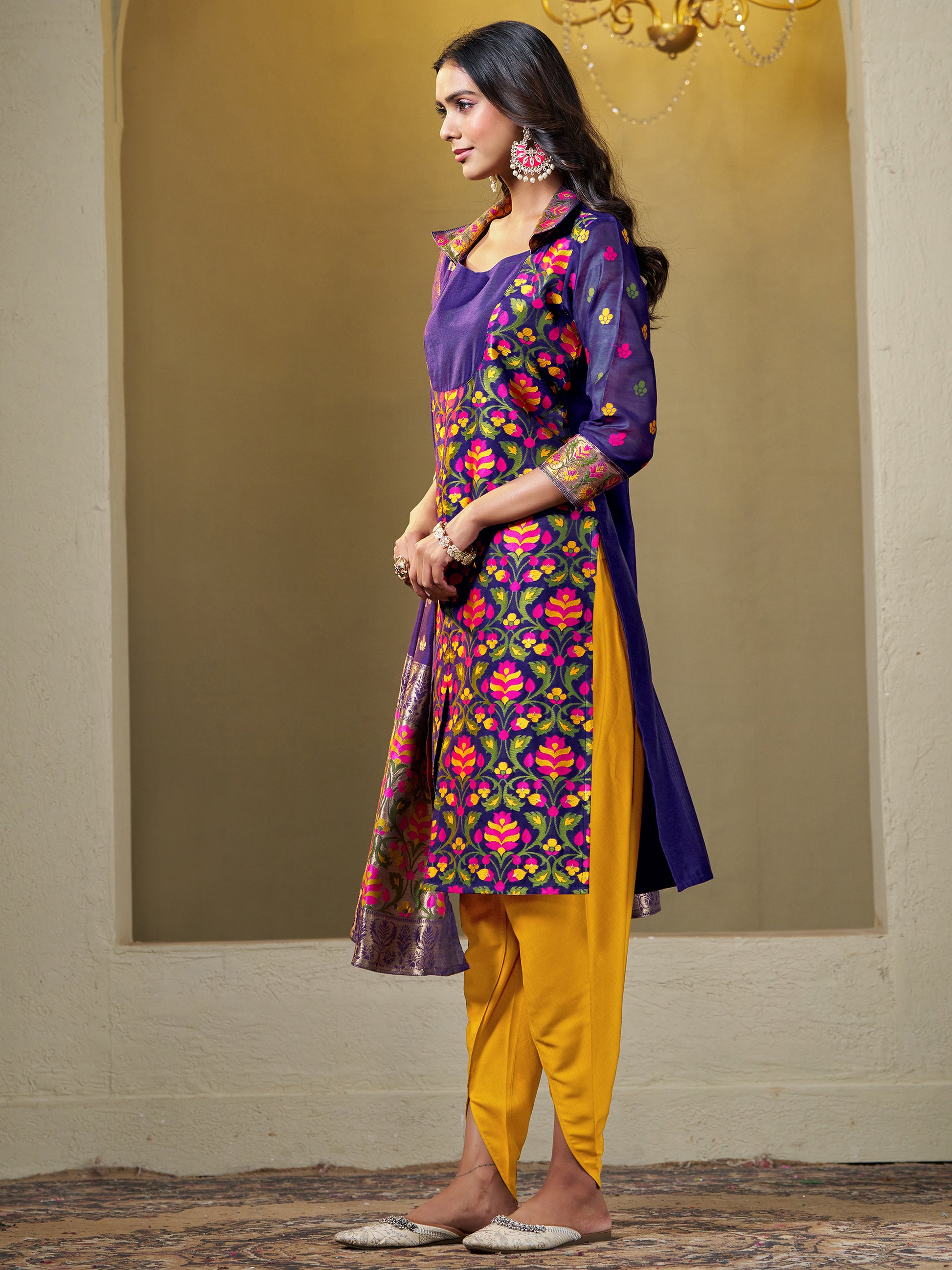 Add a touch of elegance to your collection with this stunning embroidery Kurta Dhoti With Dupatta designed to impress. Crafted from high-quality Cotton Blend fabric, this A-line Kurta features intricate Brocade Embroidered that enhances its traditional charm. The pleated, flared silhouette provides a graceful flow and enhances your comfort, making it perfect for both casual and festive occasions. The Full sleeves offer a classic look while ensuring ease of movement.