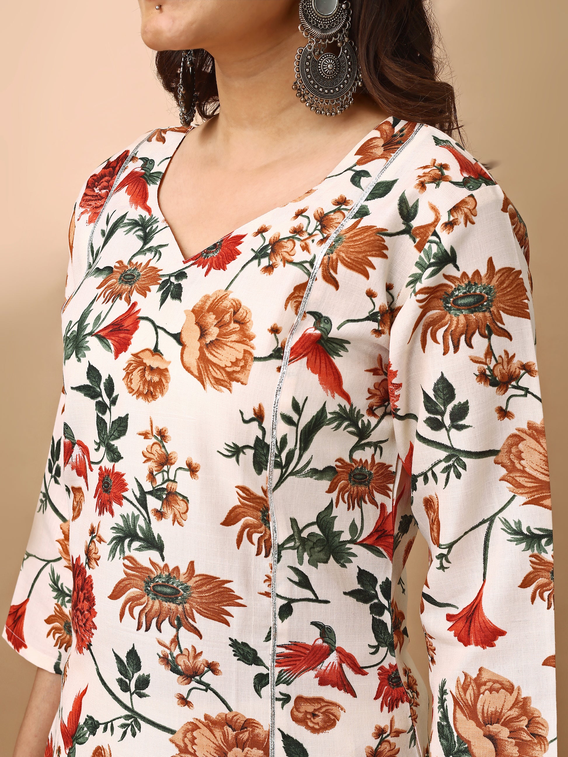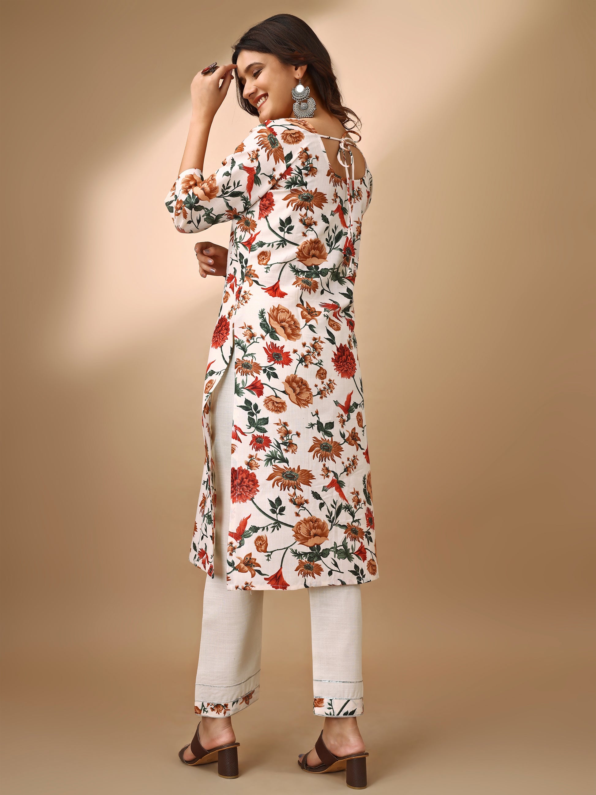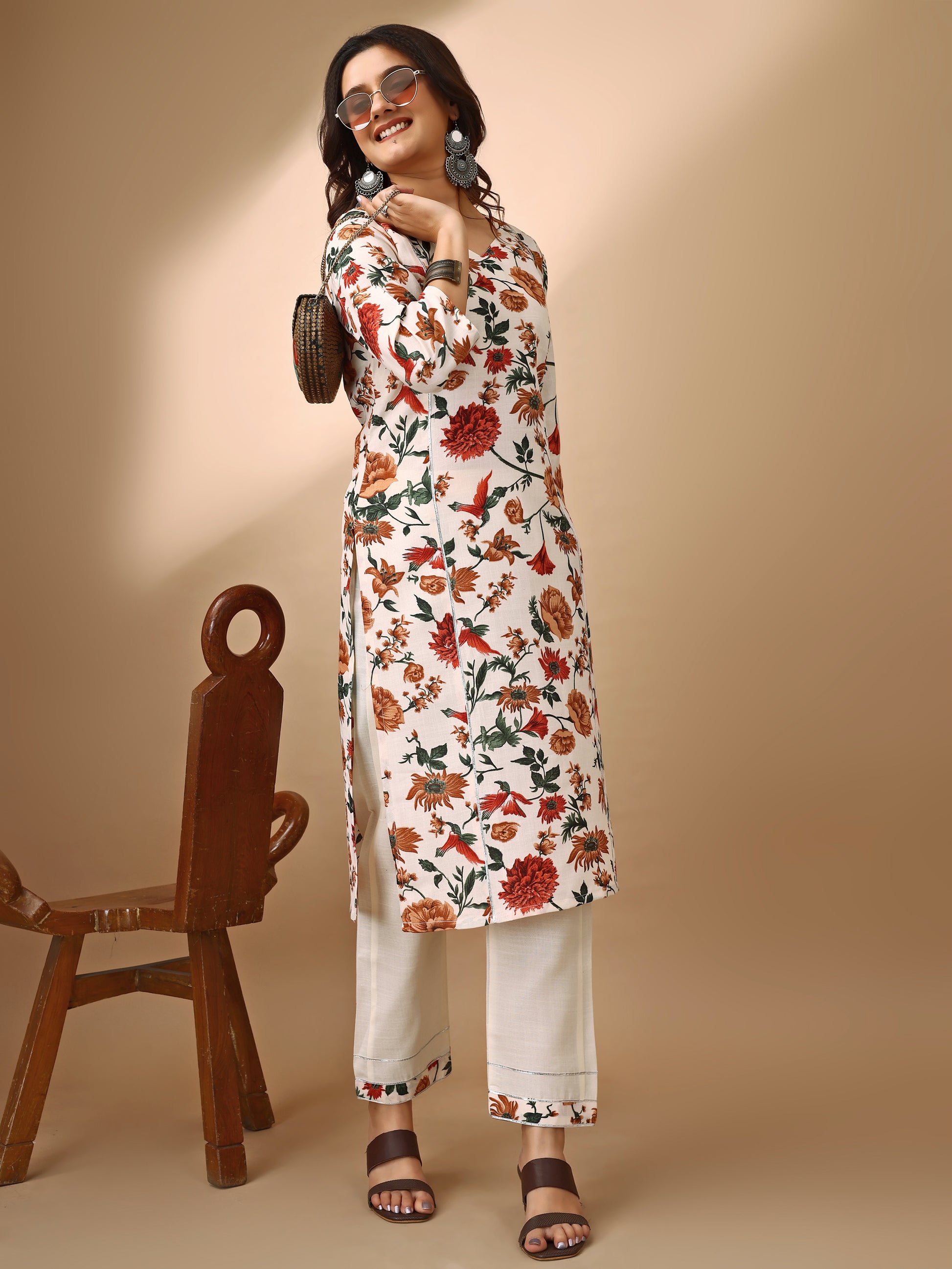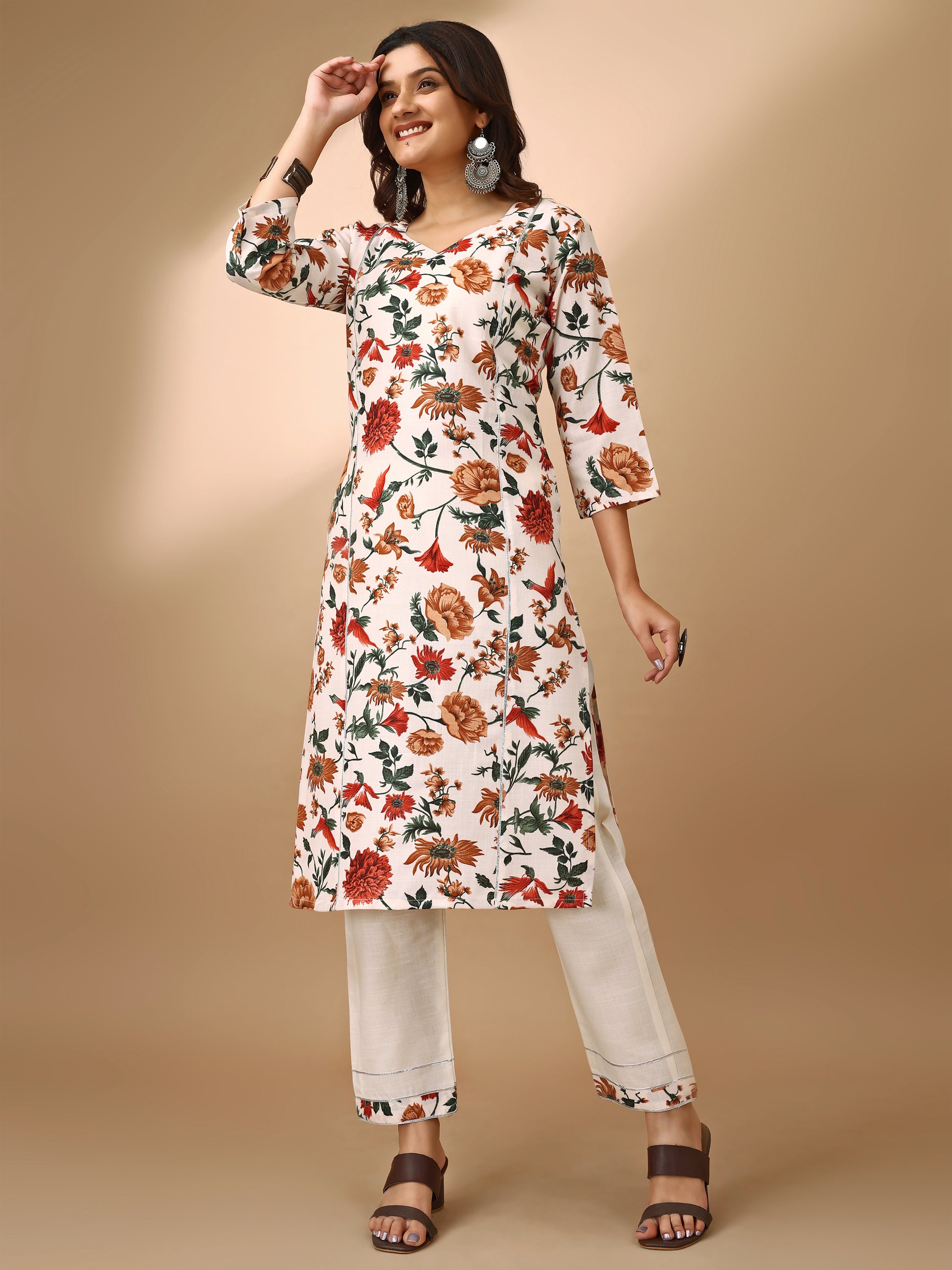 This Straight Kurta And Pant Set can be classified and can also be worn with Palazzo or jeans. Crafted in Cotton Blend fabric, the pretty color of this kurta will surely elevate your daily style.