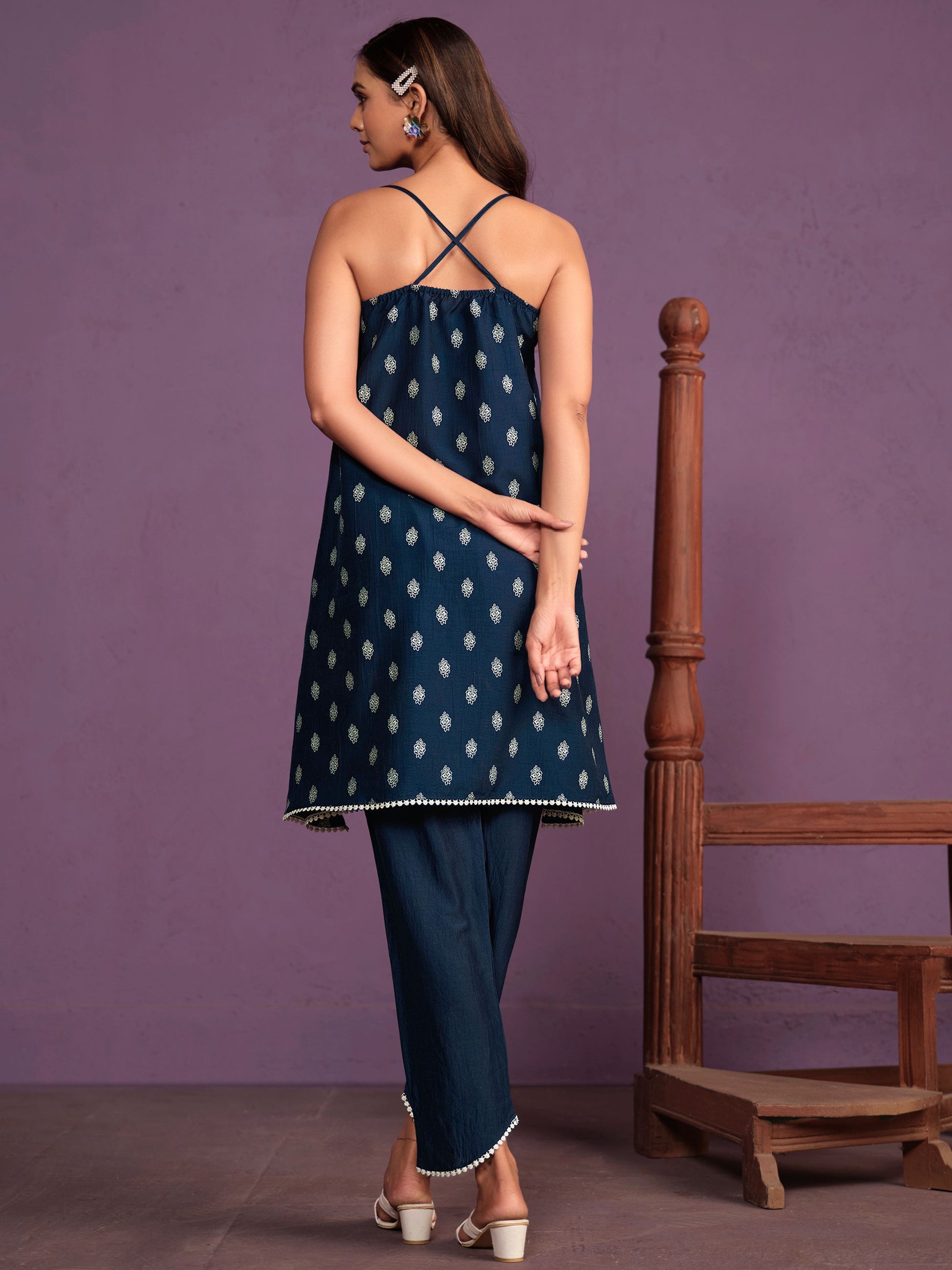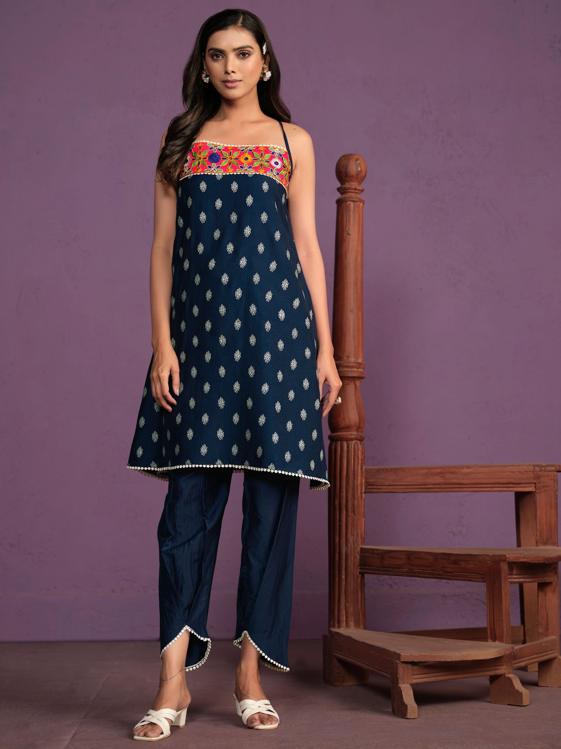 Cotton Silk Embroidered A-line Tunic and Dhoti Co-ords set