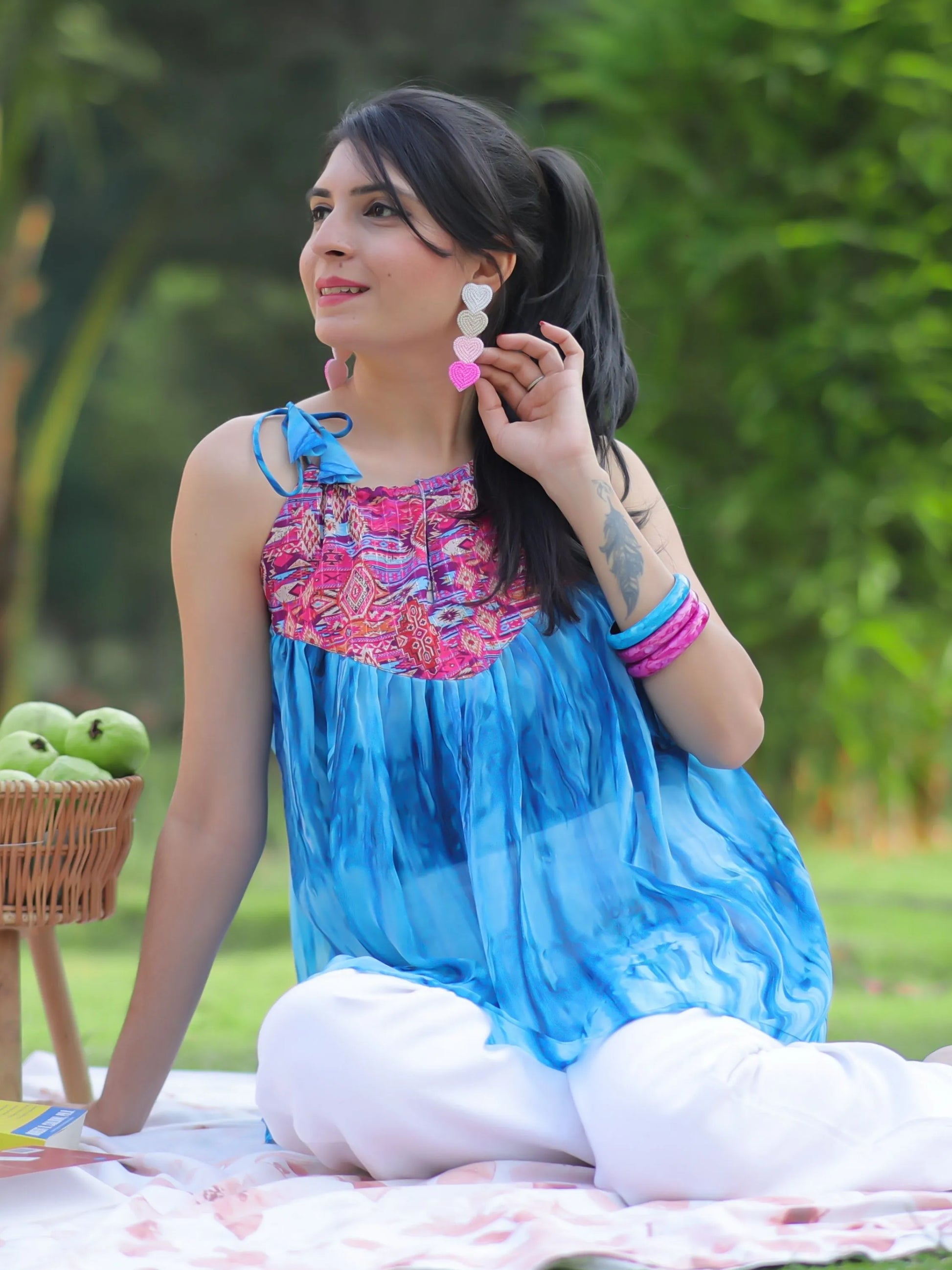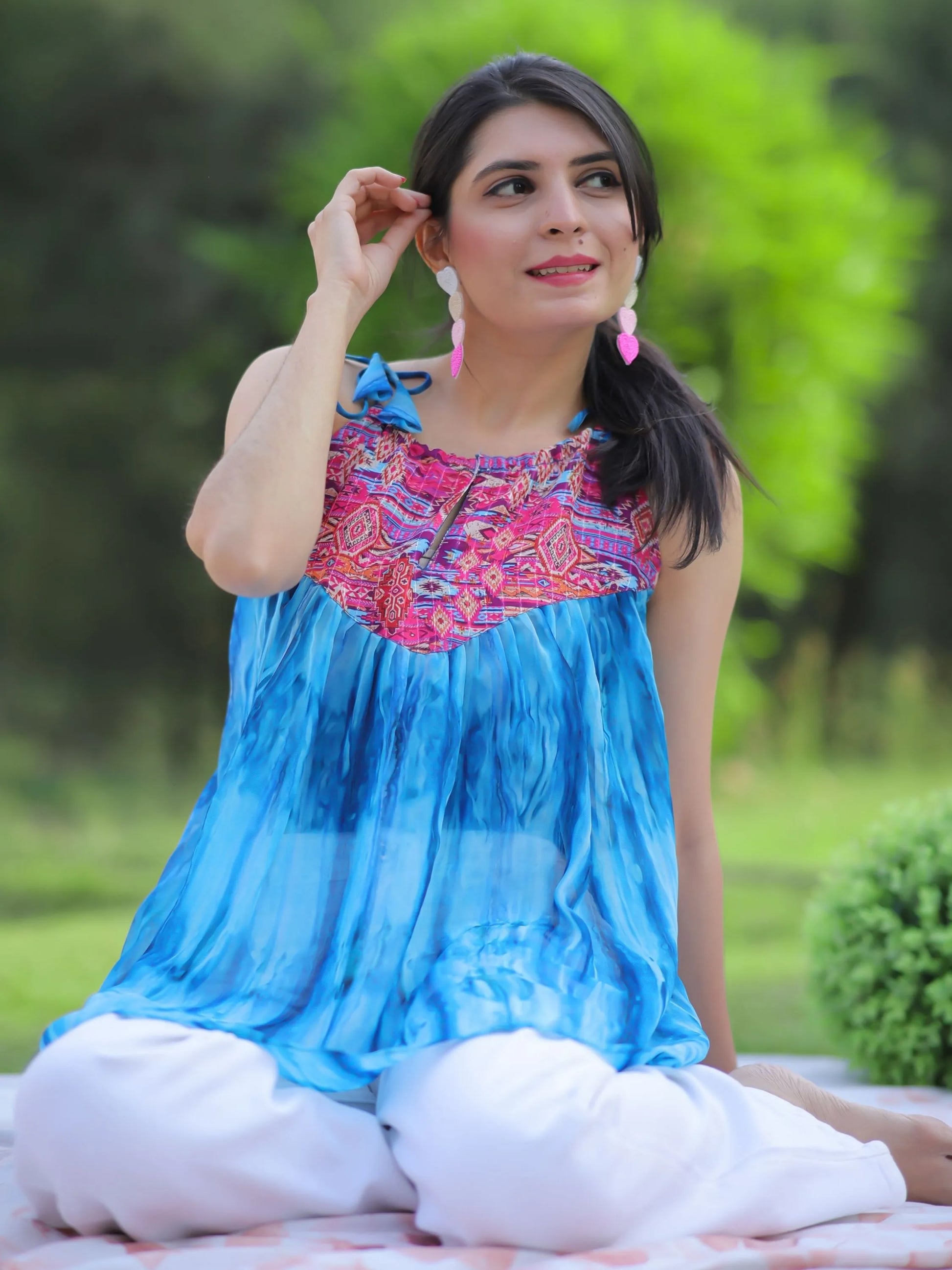 brighten up your casual wardrobe with Short Kurti, featuring a playful embroidery on a vibrant ombre dye base. This Top is perfect for casual wear, Party Wear adding a fresh and trendy vibe to your everyday style. The lightweight fabric and relaxed fit ensure all-day comfort, making it ideal for laid-back outings or casual gatherings. Pair it with jeans or palazzos to create your own effortless look, embracing the best of modern ethnic fashion.