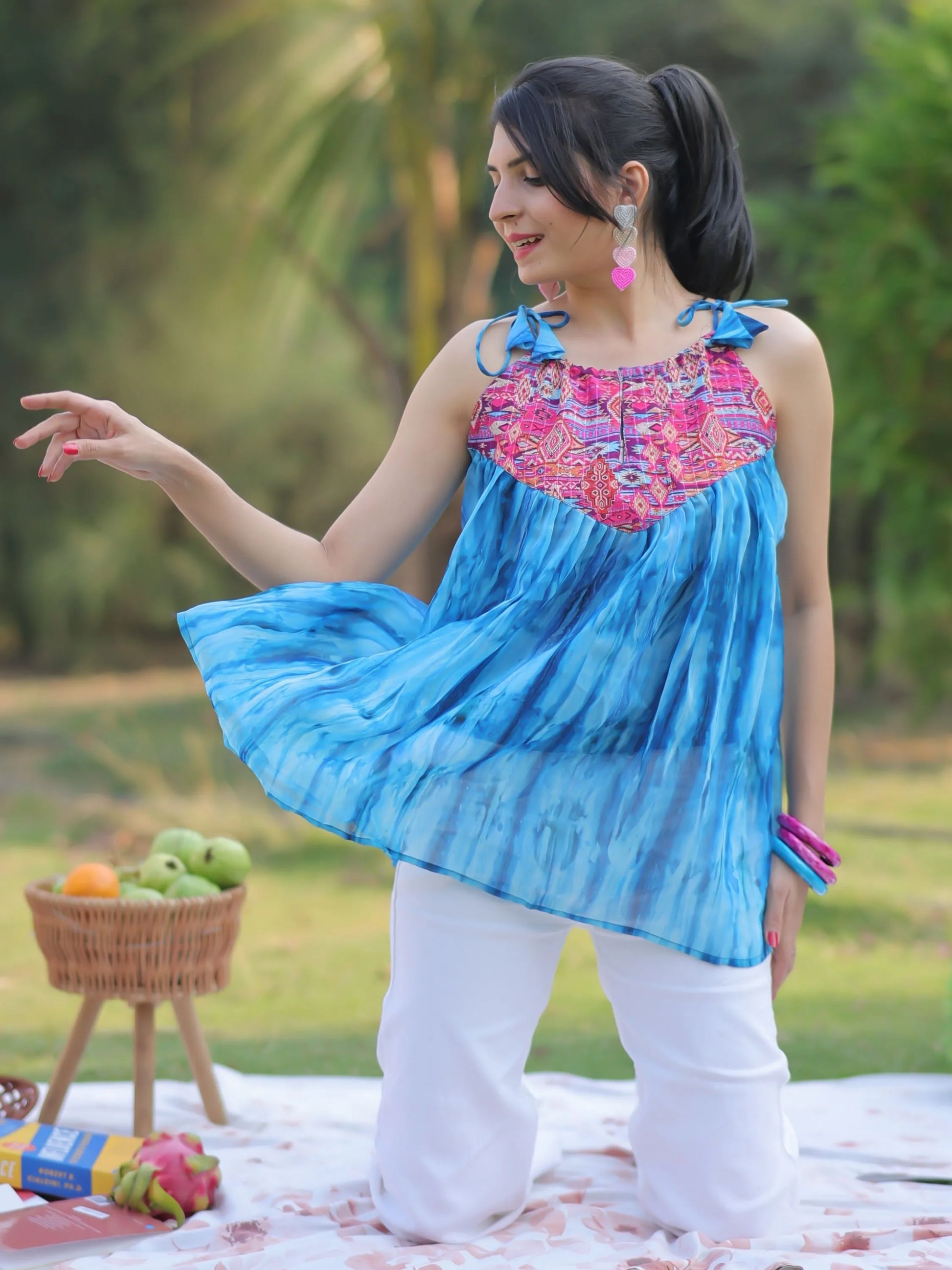 Youthnic Women's Georgette Shoulder Knot Flared Summer wear Top
