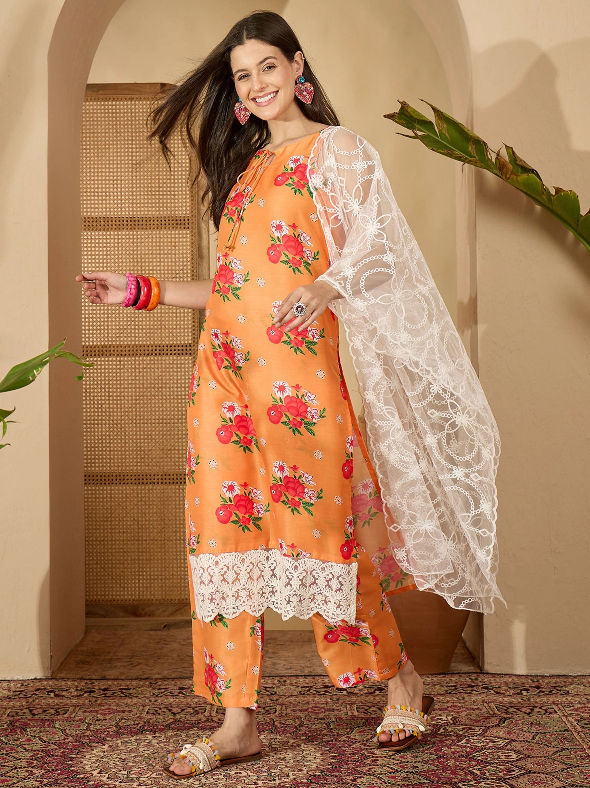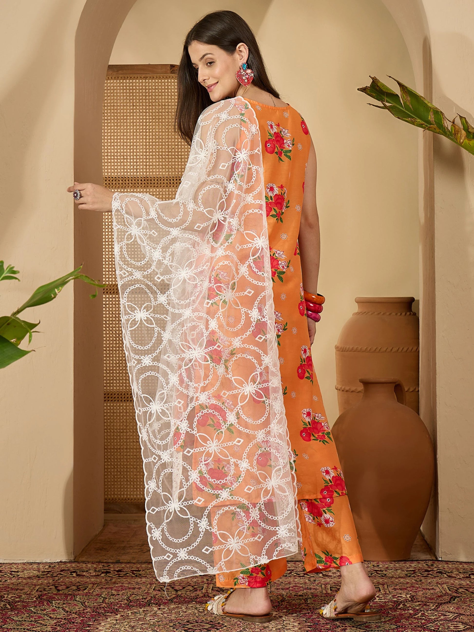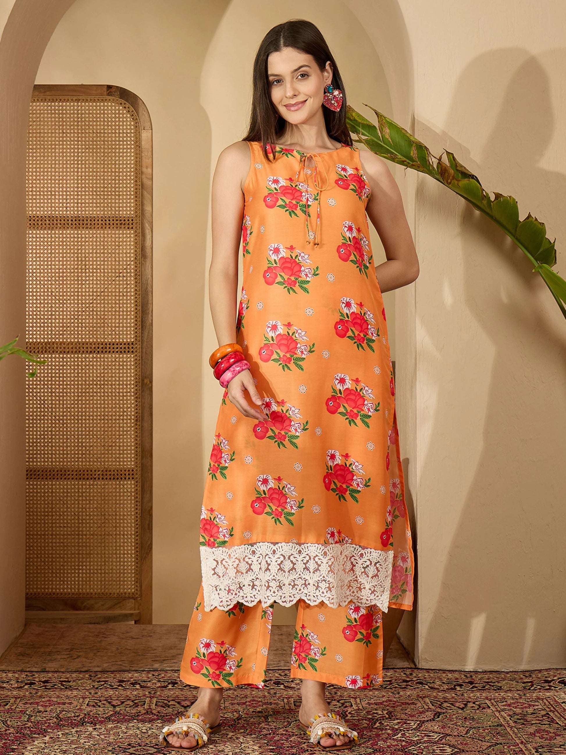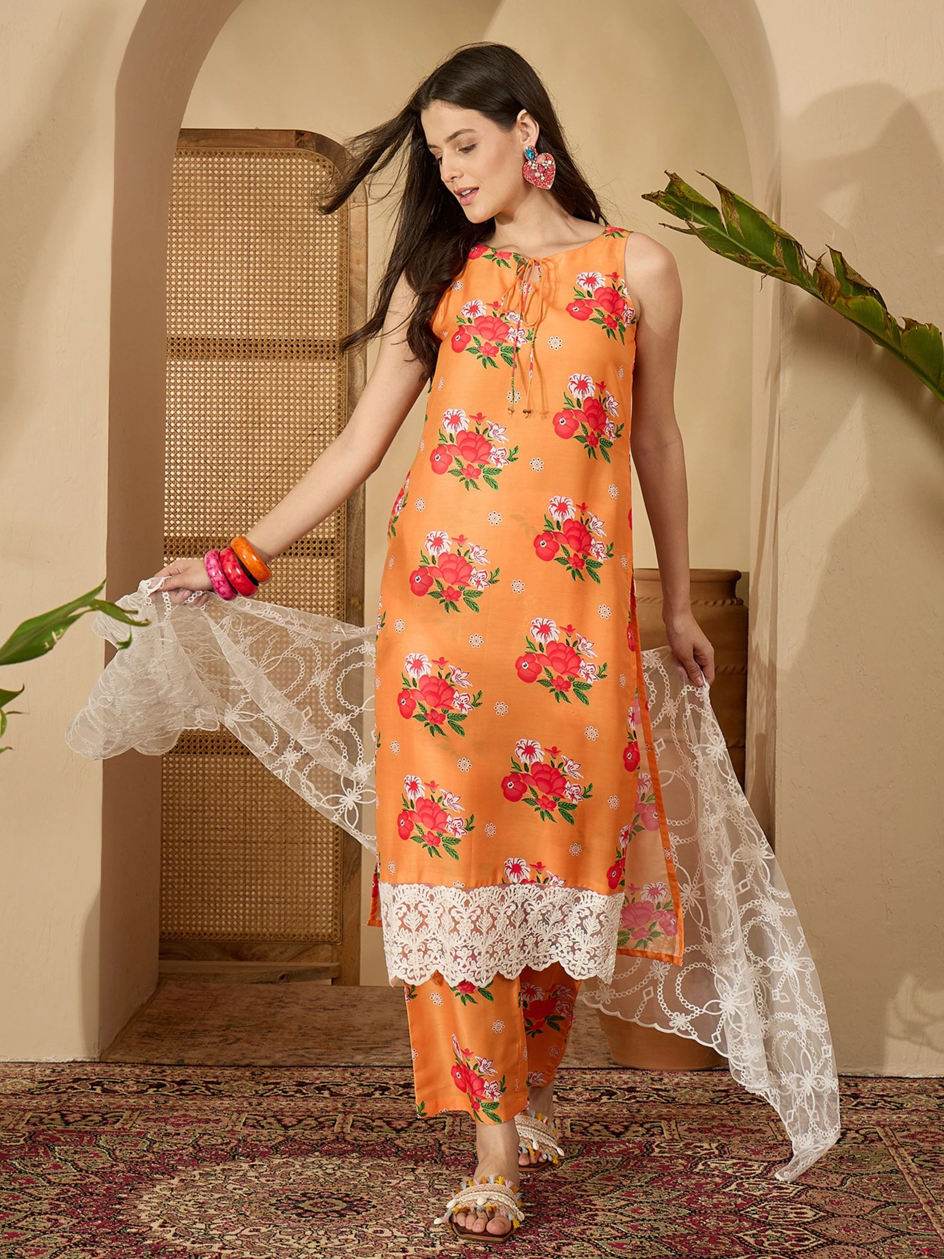Step into elegance with this beautifully crafted PolyCotton Kurta Palazzo Dupatta Set. Tailored from a rich PolyCotton fabric, this ensemble features a sleeveless straight-fit kurta with a round neckline and delicate floral prints that add a touch of grace. The matching palazzo pants offer comfort and flair, while the coordinated dupatta completes the ethnic look effortlessly.